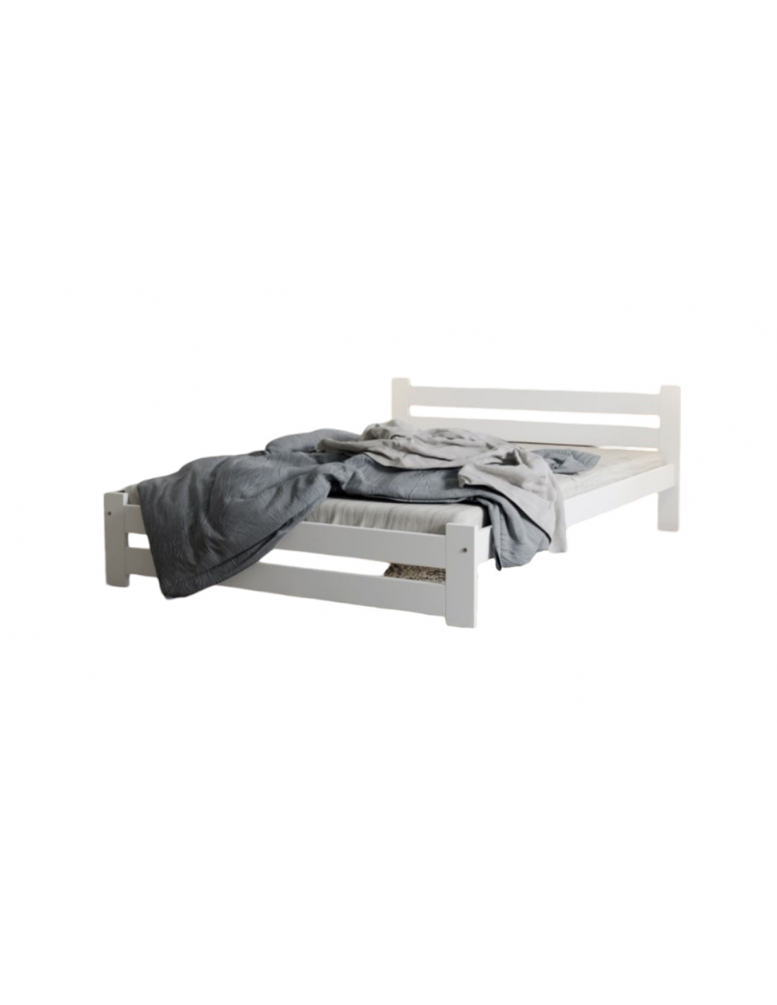 Bett aus Holz LINA Kiefernholzbett + Lattenrost Massivholz 120 x 200 cm Weiß