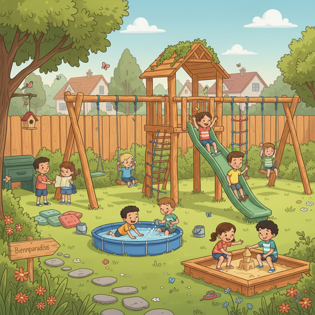 Ob ganz ohne Spielgerät oder mit einem vielseitigen Spielturm – der Garten bietet unzählige Möglichkeiten für Kinder, sich auszutoben, kreativ zu sein und gemeinsam Zeit zu verbringen. Mit etwas Fantasie wird jeder Tag zu einem neuen Abenteuer.