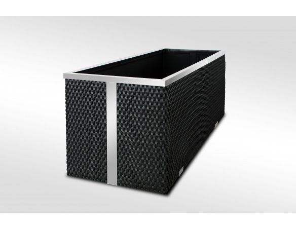 Pflanzkübel mit Polyrattanbeschichtung und dekorativen Aluminiumleisten