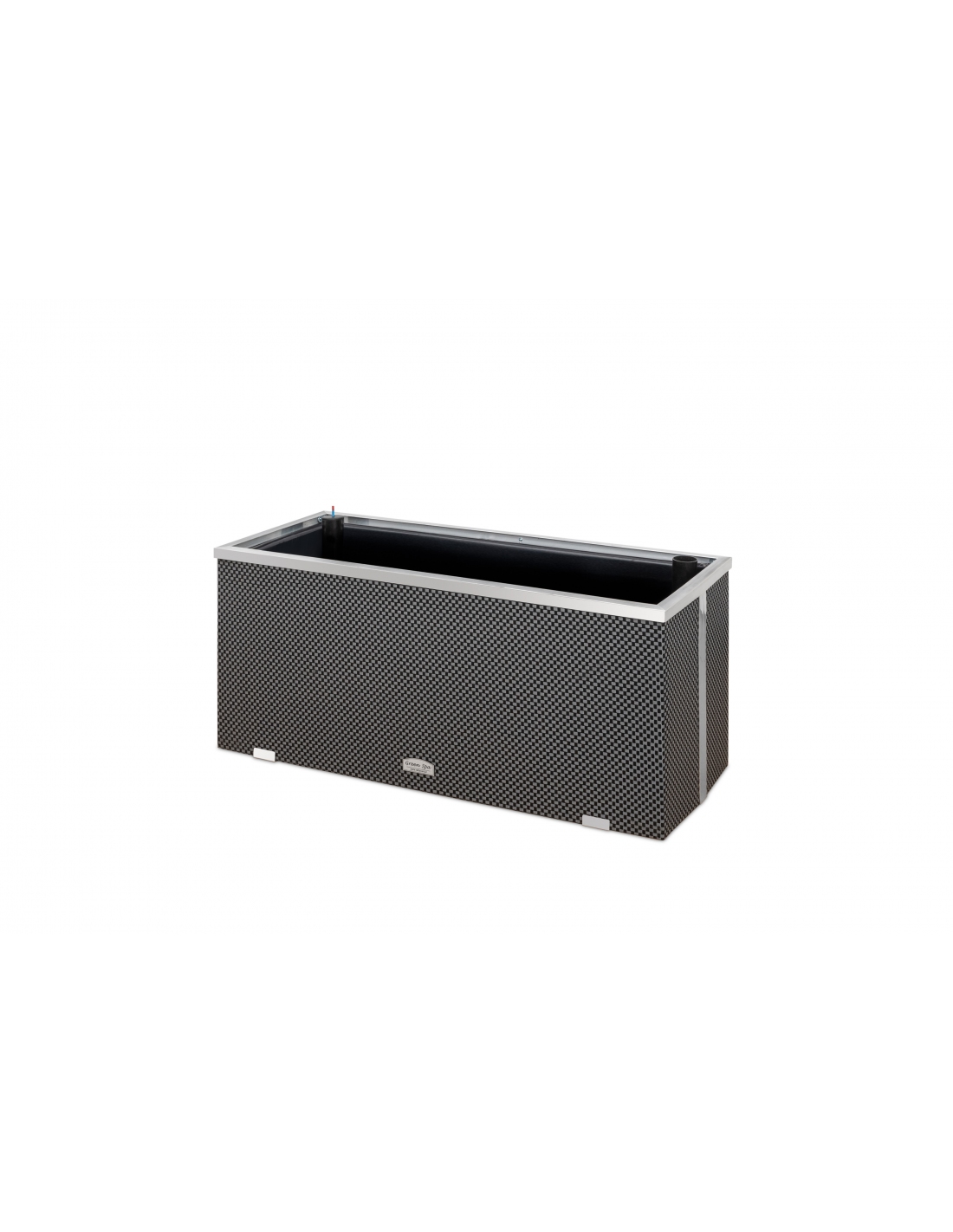 Unser Blumenkübel vereint Funktionalität mit modernem Design. Das Innere besteht aus robustem, verzinktem Blech, während die Außenfläche mit elegantem Polyrattan und poliertem Aluminium veredelt ist. Zusätzlich verfügt das Gefäß über eine Innenisolierung aus 2 cm starkem Styrodur und ist mit einer dicken, schwarzen Folie ausgekleidet, die die Pflanzen optimal schützt.
