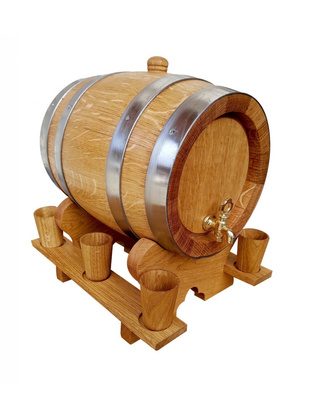 Eichenfass 3 Liter + 6 Holz Becher mit Zapfhahn aus Messing Fass Holzfass Weinfass Natur