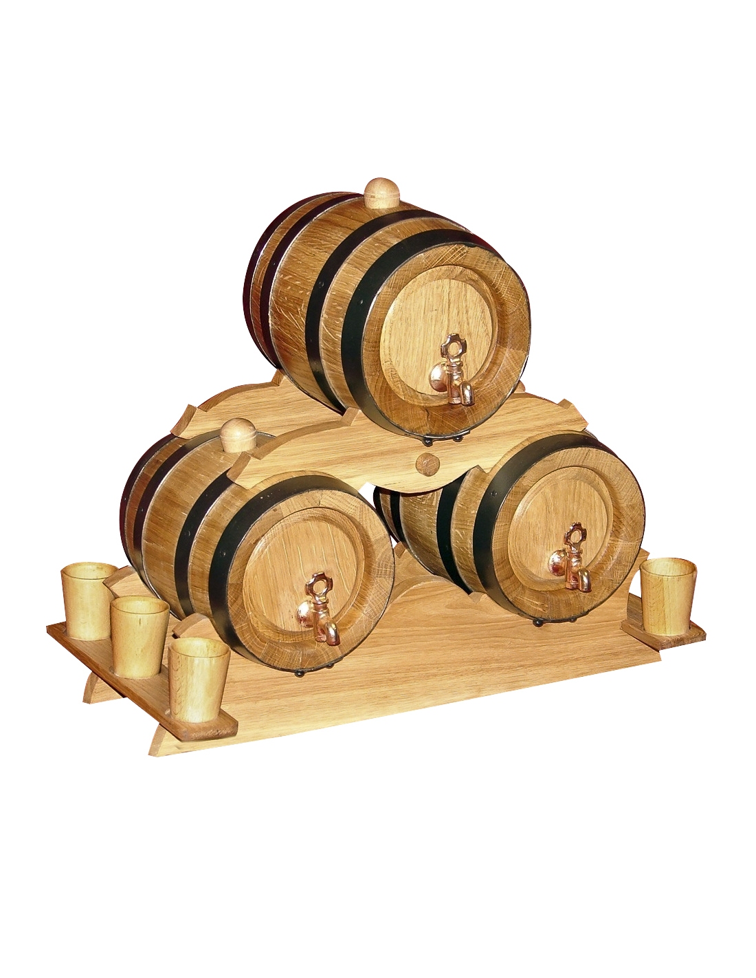 Eichenfass Set 3 x Fass 2 Liter + 6 Holz Becher mit Zapfhahn aus Messing Fass Holzfass Weinfass Natur