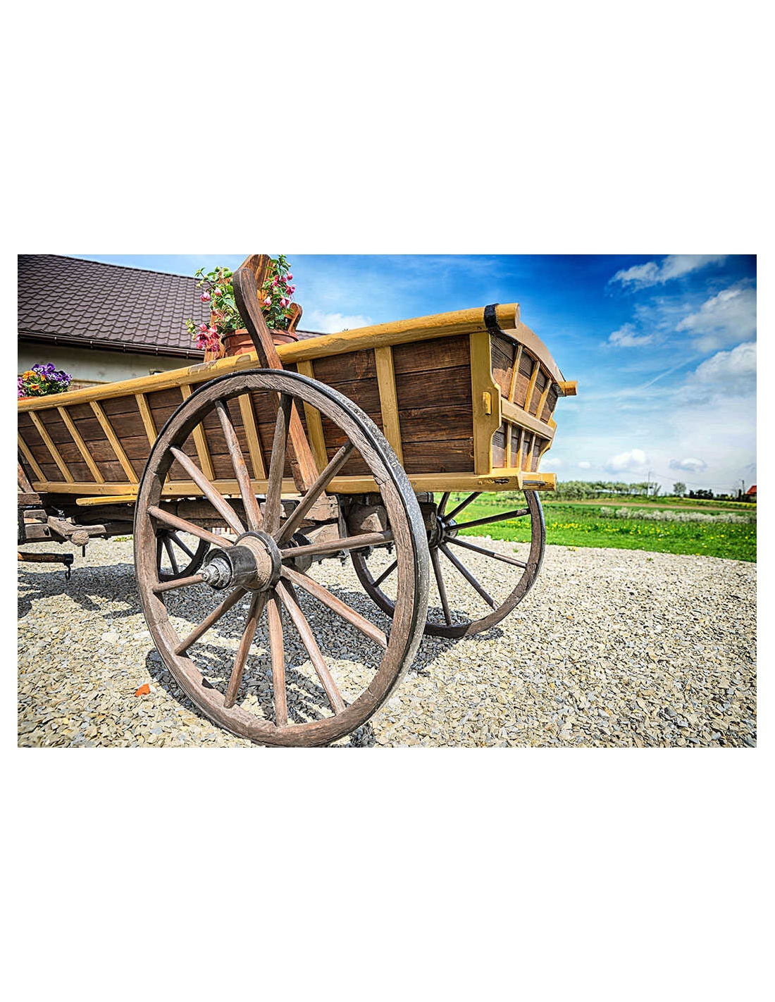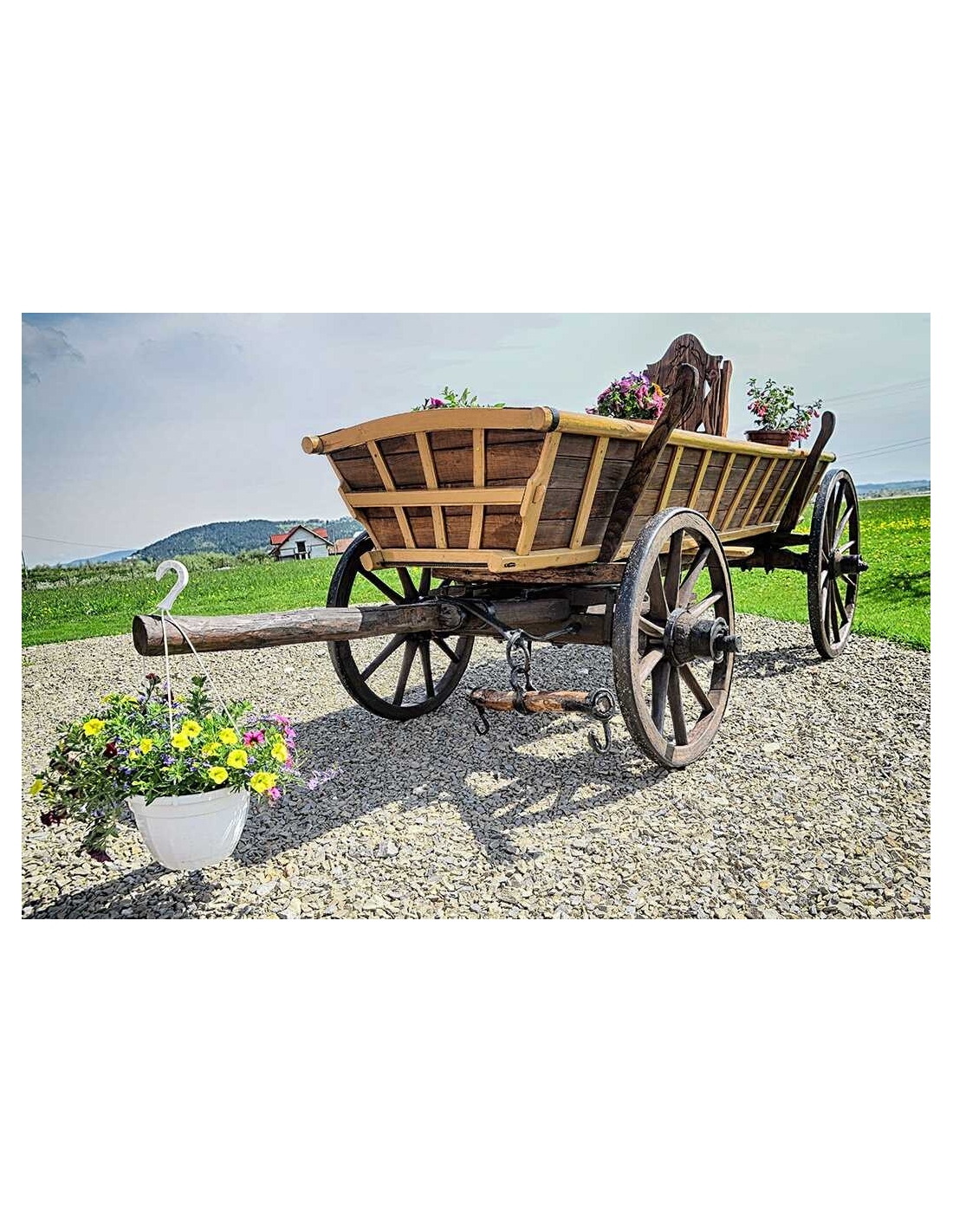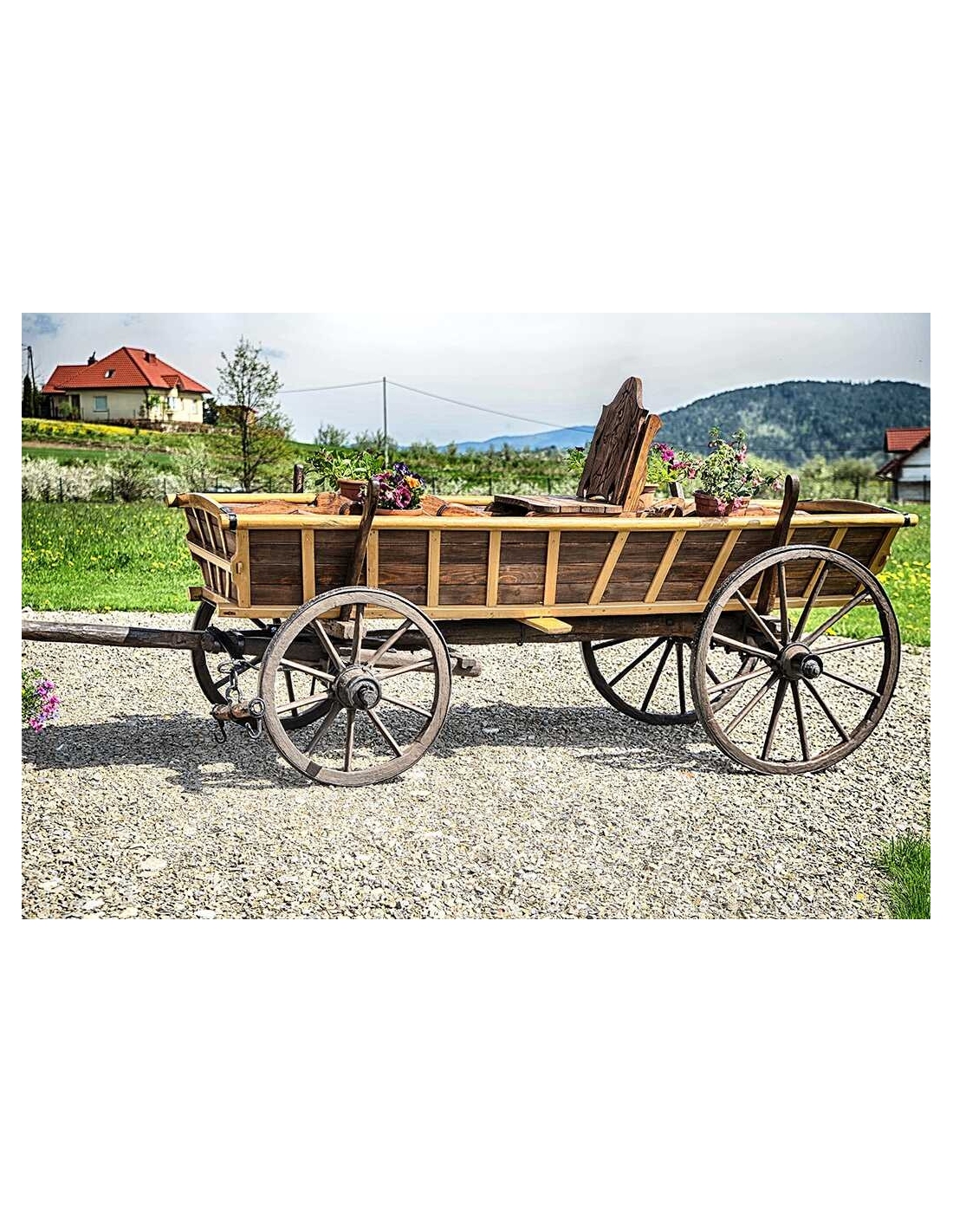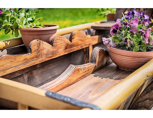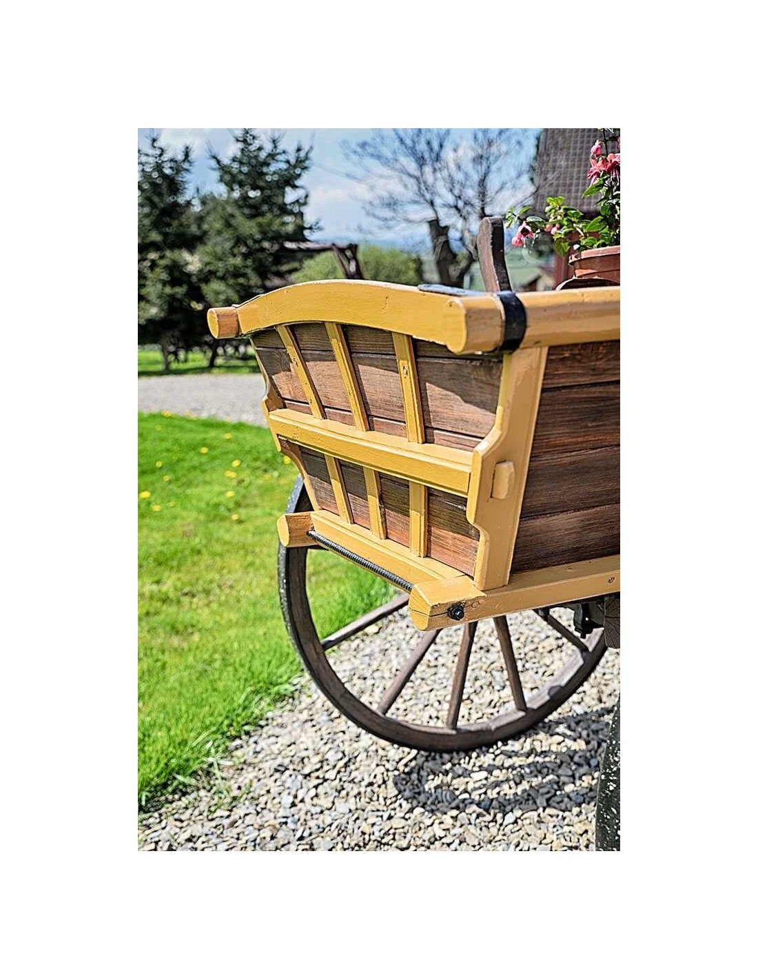 Alter Fuhrwerk / Leiterwagen / Heuwagen nach Renovierung. 1:1 Pferdefuhrwerk in Originalgröße. Perfekt als Gartendekoration, inklusive Blumenbeeten zum Pflanzen von Blumen. Jedes Fuhrwerk ist ein Unikat, sie werden aus den ältesten Dörfern der Masuren, Kaschubien und Bergregionen Polens, Tschechiens und der Slowakei importiert.