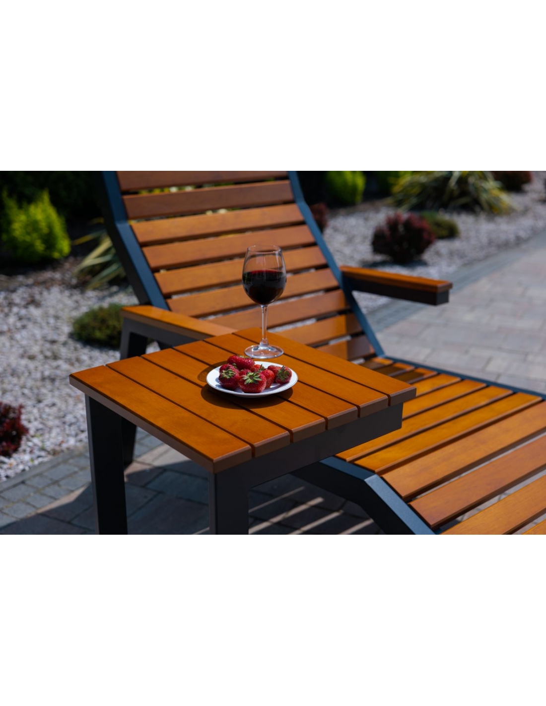 Diese elegante Gartenliege besteht aus sorgfältig gefertigten Holzleisten aus Erlenholz. Die Holzoberfläche wurde zweimal mit einem speziellen Lacklasurverfahren beschichtet (SIGMA COATINGS - Holzlasur), wodurch sie wetterfest und langlebig ist. Sie können zwischen den Farben Walnuss, Palisander und Kiefer wählen, um die Liege perfekt an Ihre Umgebung anzupassen. Der Rahmen ist aus robustem Metall gefertigt und wurde schwarz pulverbeschichtet, was ihn korrosionsbeständig und modern macht.