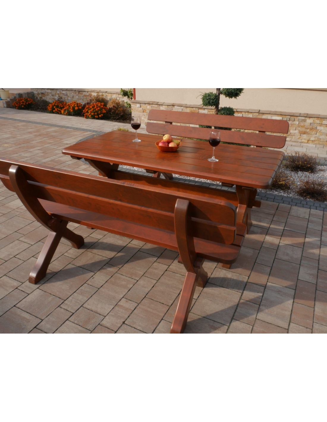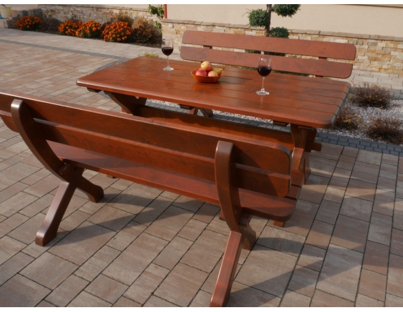 Exklusives Gartenmöbel-Set aus Holz im bayerischen Stil ist ideal für Feste und Partys.