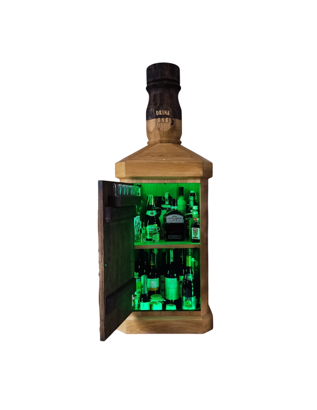 Große Flaschenbar JACK PREMIUM Barschrank aus Eichenholz mit LED-Beleuchtung 135 cm Handwerk