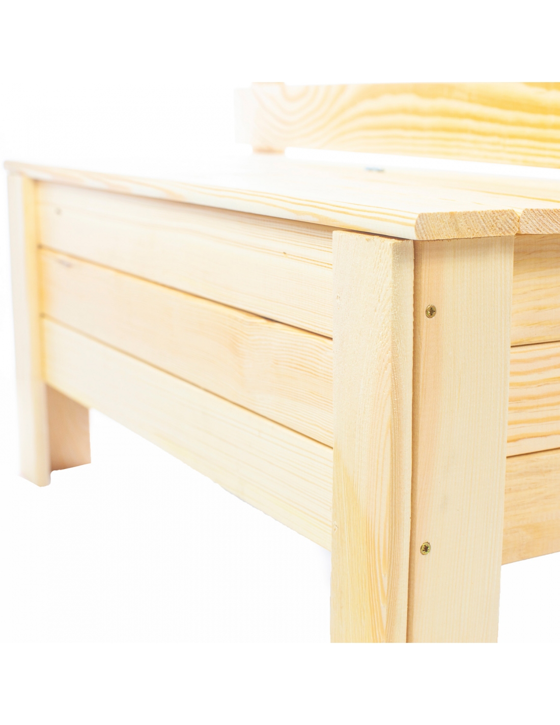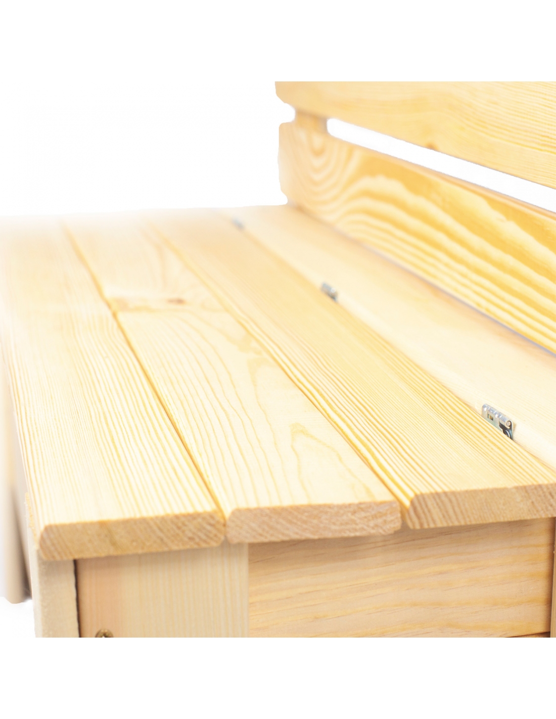 Die Holz-Gartenkiste ist eine ausgezeichnete Wahl, wenn es um die Aufbewahrung von Werkzeugen, Gartenmöbelkissen oder anderen Gegenständen geht, die du im Freien griffbereit haben möchtest. Die Kiste ist aus Kiefernholz gefertigt und hat ein natürliches, rohes Finish im rustikalen Stil. Sie kann auch nach Belieben gestrichen werden.