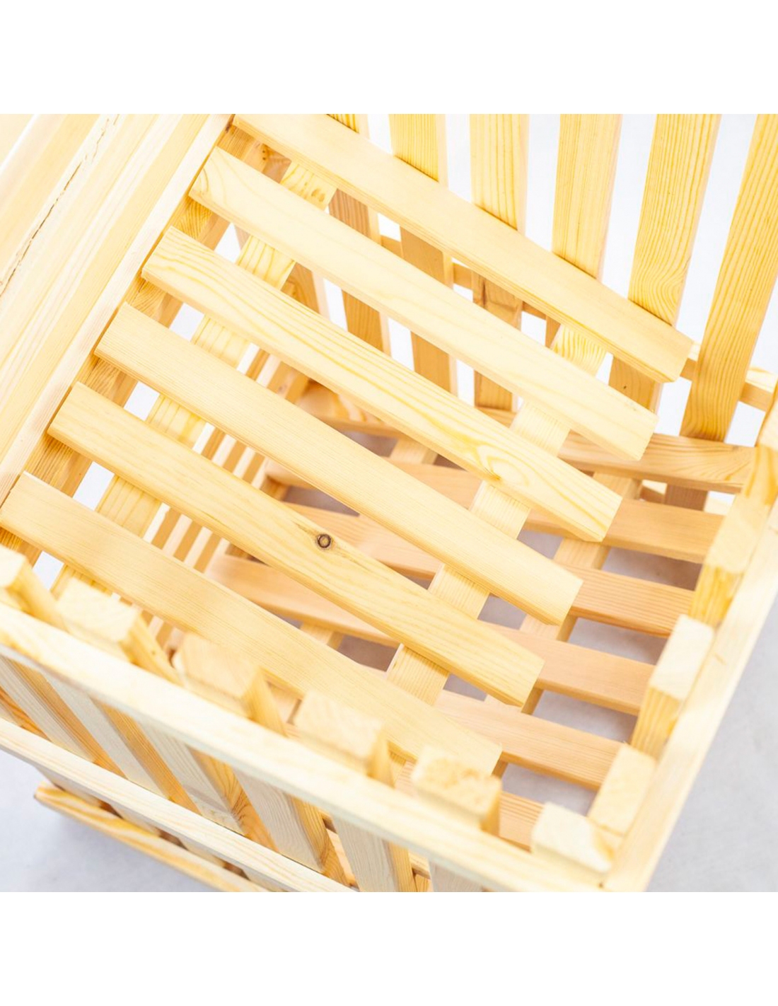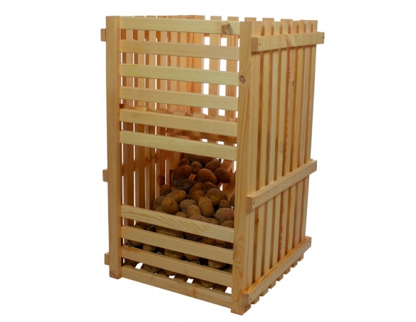 Holzkiste für Gemüse und Obst, speziell entworfen für die Lagerung von Kartoffeln, aber auch vielseitig einsetzbar. Perfekt zur Aufbewahrung von Lebensmitteln in der Küche, Speisekammer, im Keller oder in der Garage. Hergestellt aus Holz mit einer natürlichen Oberfläche, ist sie sowohl funktional als auch ästhetisch. Die robuste Konstruktion sorgt für Langlebigkeit im täglichen Gebrauch.