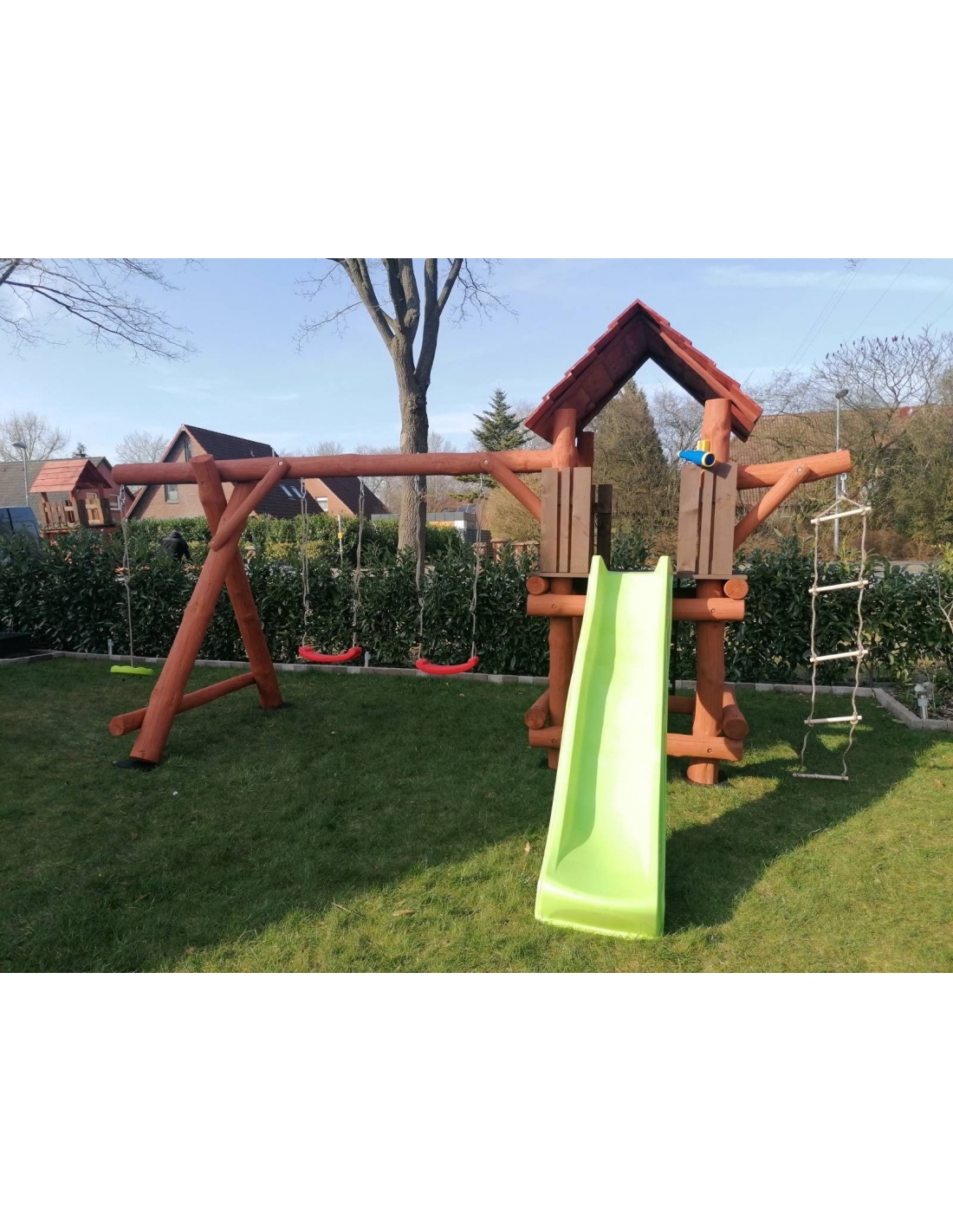 Massivholz Spielturm ANTON Klettergerüst Kletterturm Rutsche Schaukel Kletterleiter Spielplatz im Garten