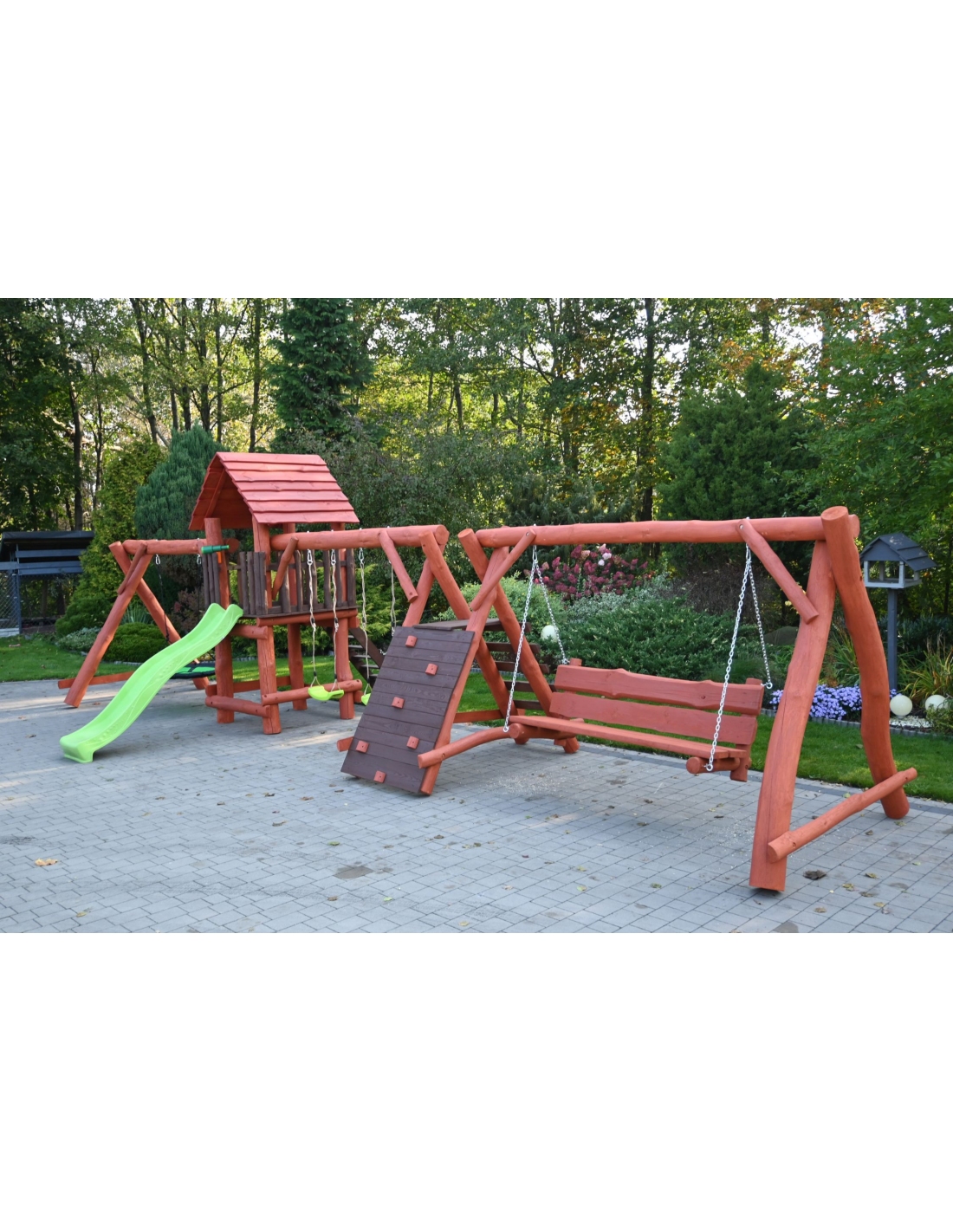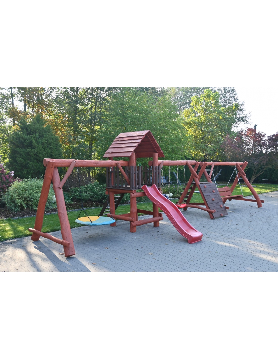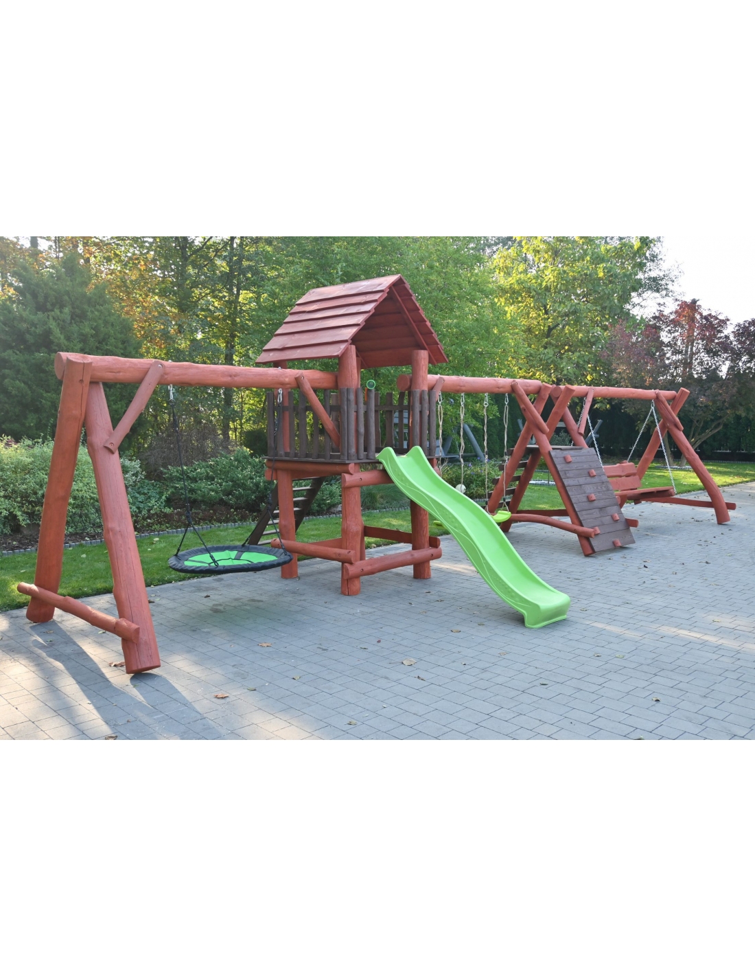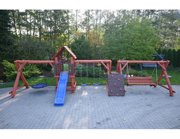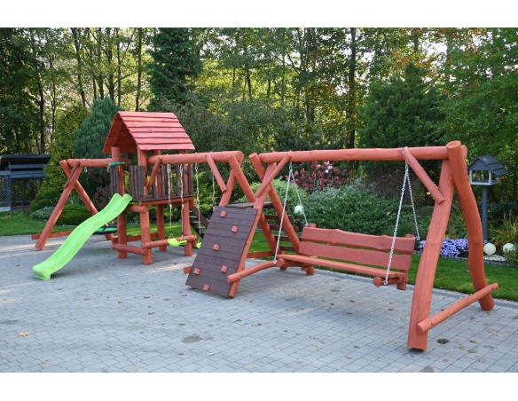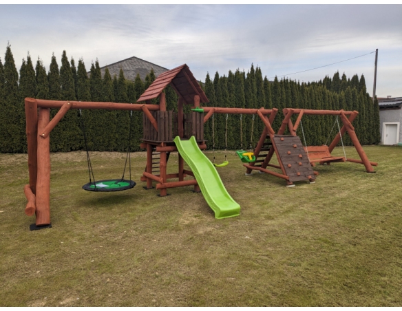 Massivholz Spielturm FELIX Klettergerüst Kletterwand Rutsche Hollywoodschaukel Babyschaukel Nestschaukel Spielplatz