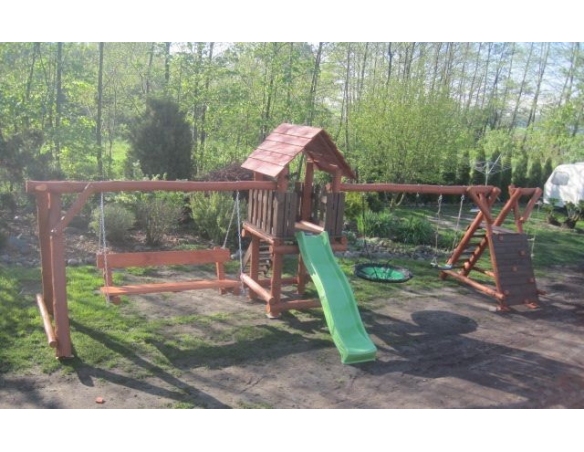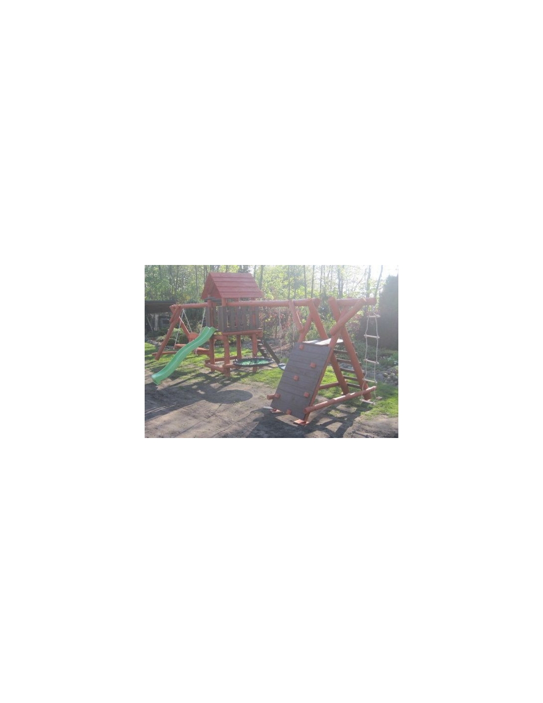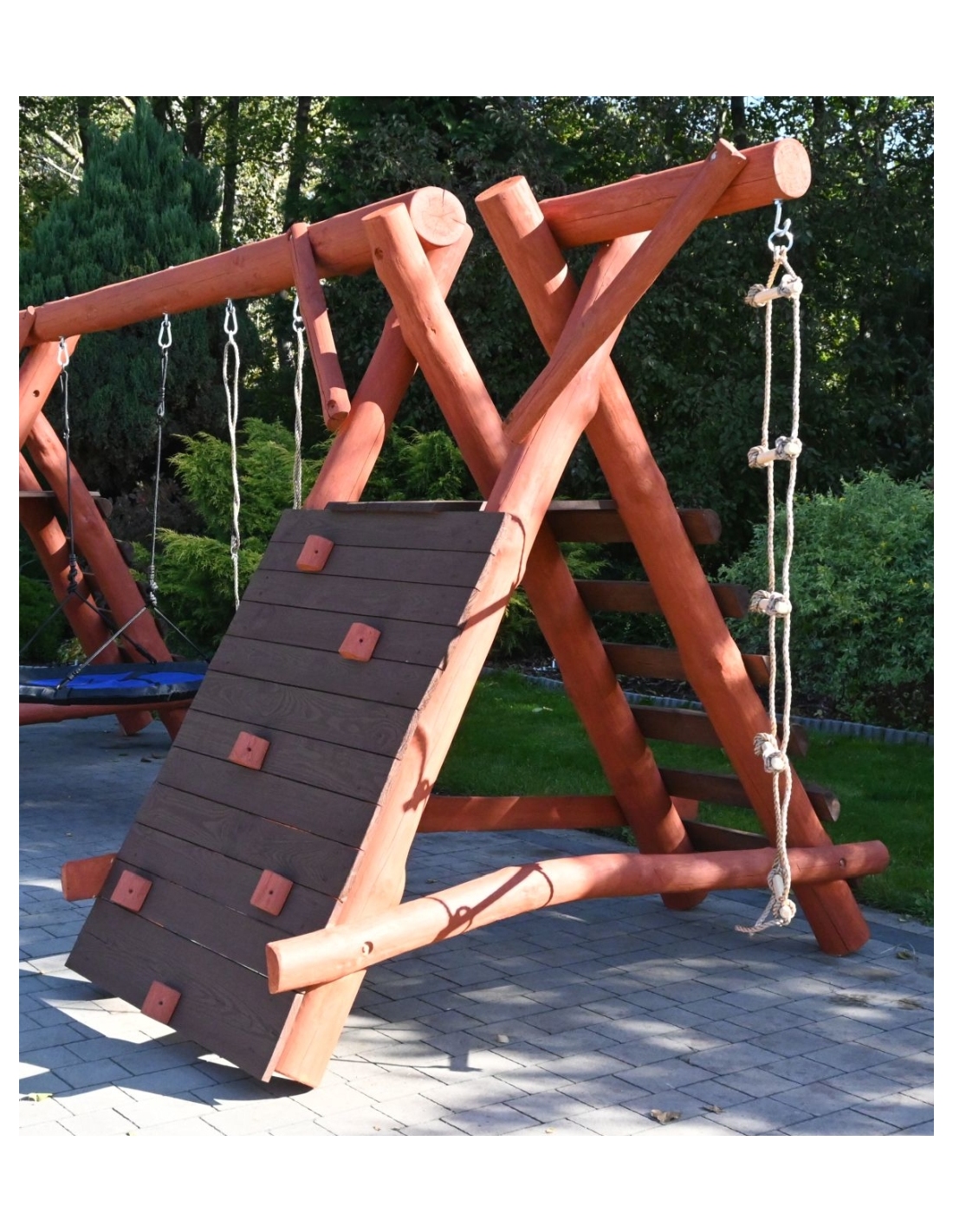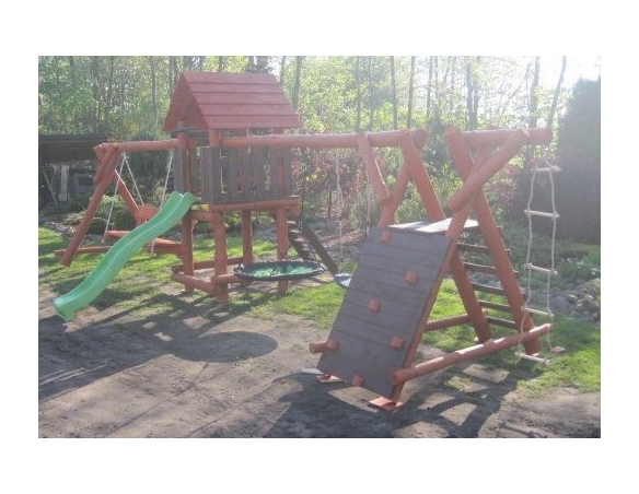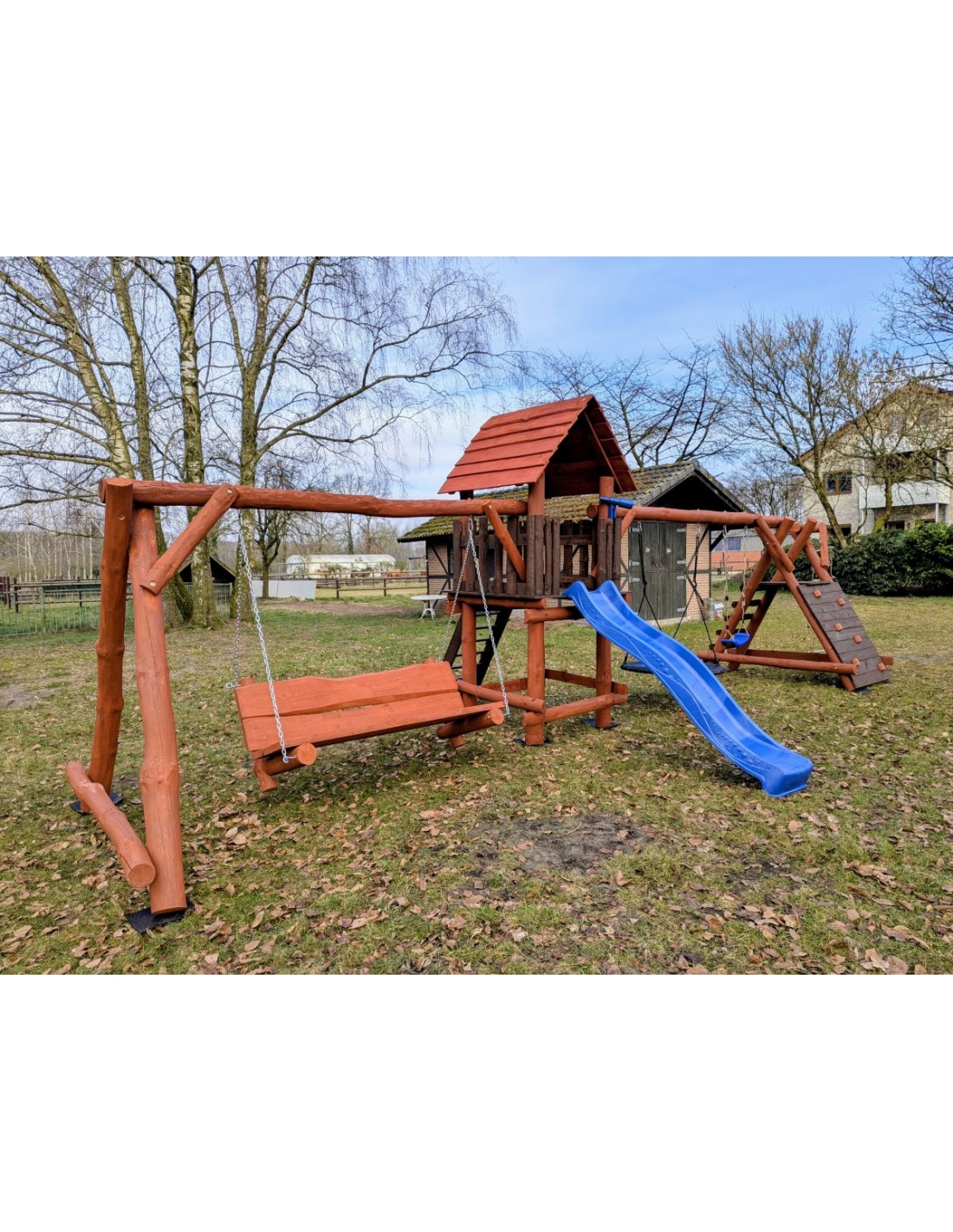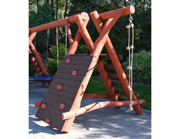 Massivholz Spielturm JONAS Klettergerüst Kletterturm Kletterwand Rutsche Hollywoodschaukel Nestschaukel Schaukel Spielplatz