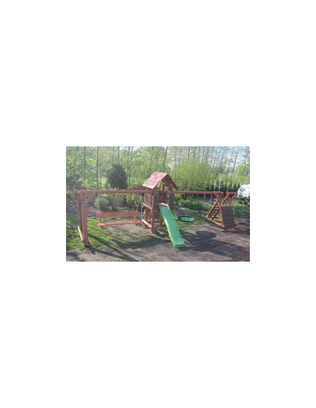 Unsere Spieltürme mit Holzhäuschen werden in einem Stück geliefert, wiegen etwa 200 kg und benötigen einen Durchgang von mindestens ca. 135 cm Breite (z. B. Gartentor, Zaun, Weg). -