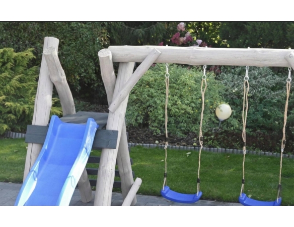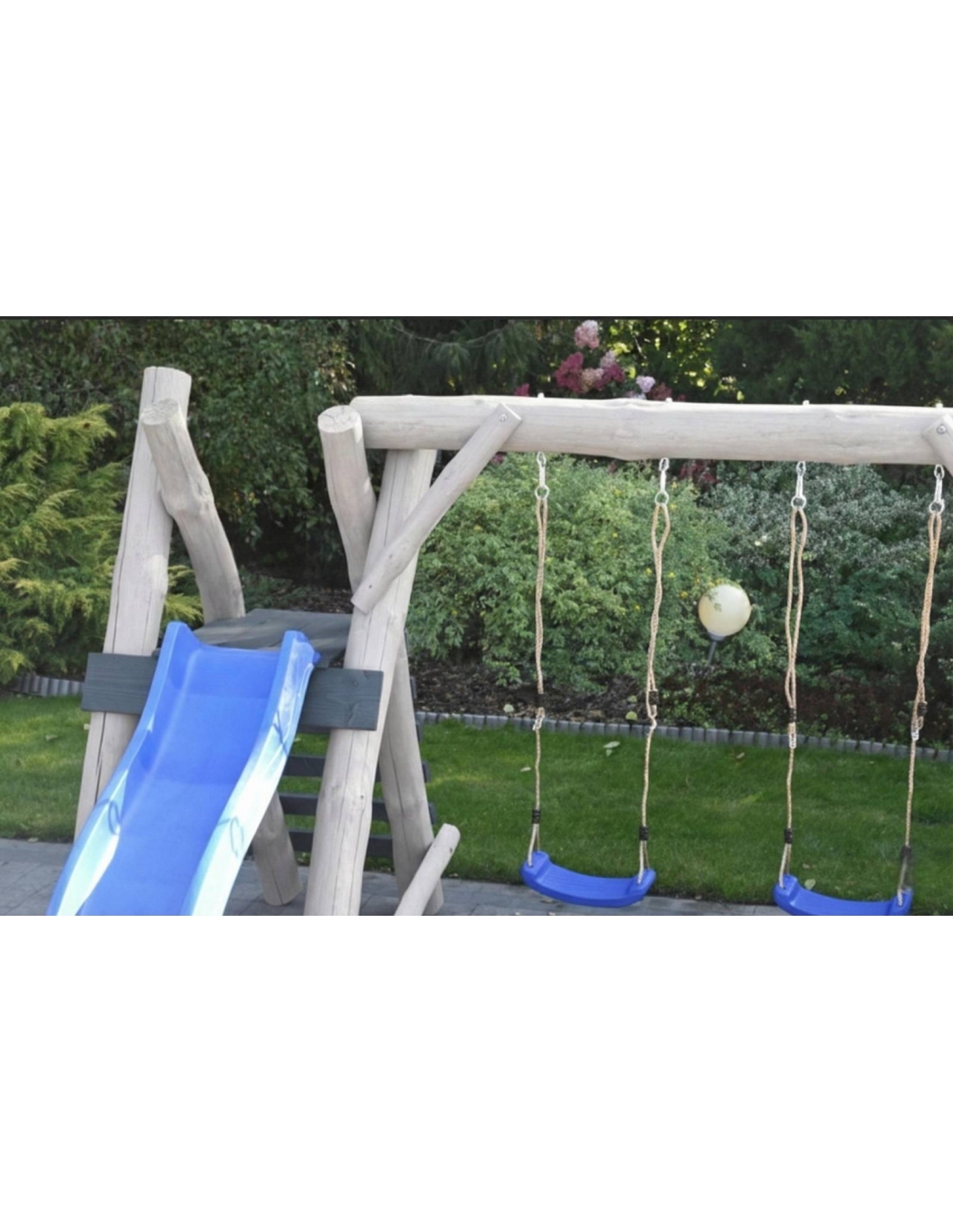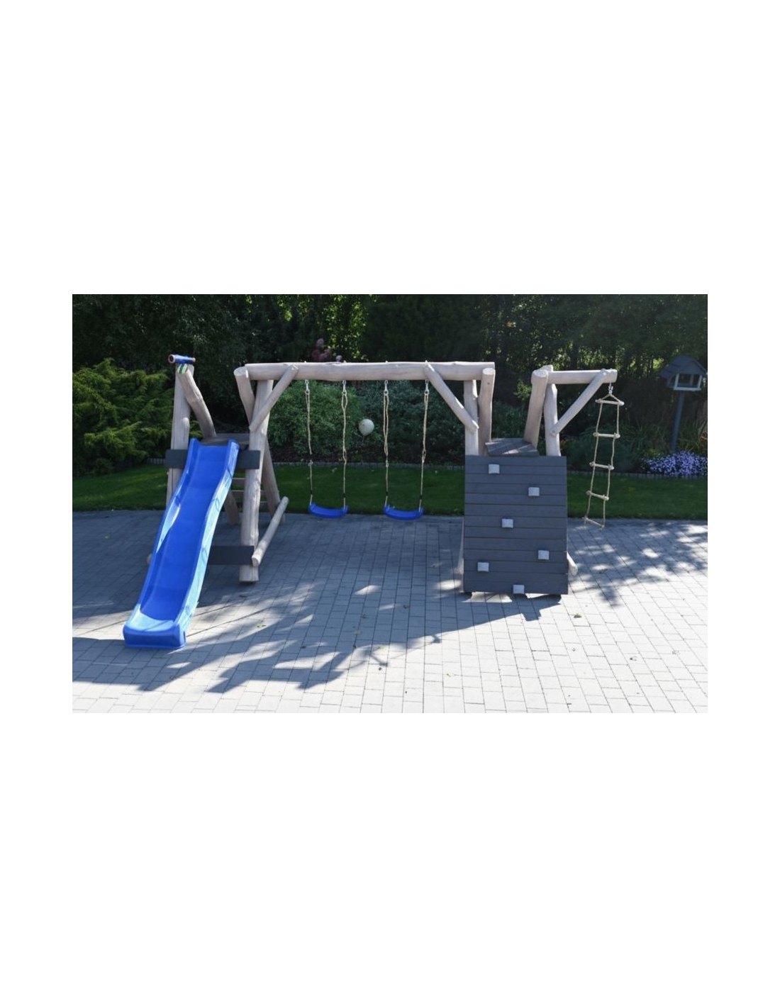 Massivholz Spielturm KARL 2 Klettergerüst Hell Kletterwand Rutsche Schaukelsitz Strickleiter Spielplatz im Garten