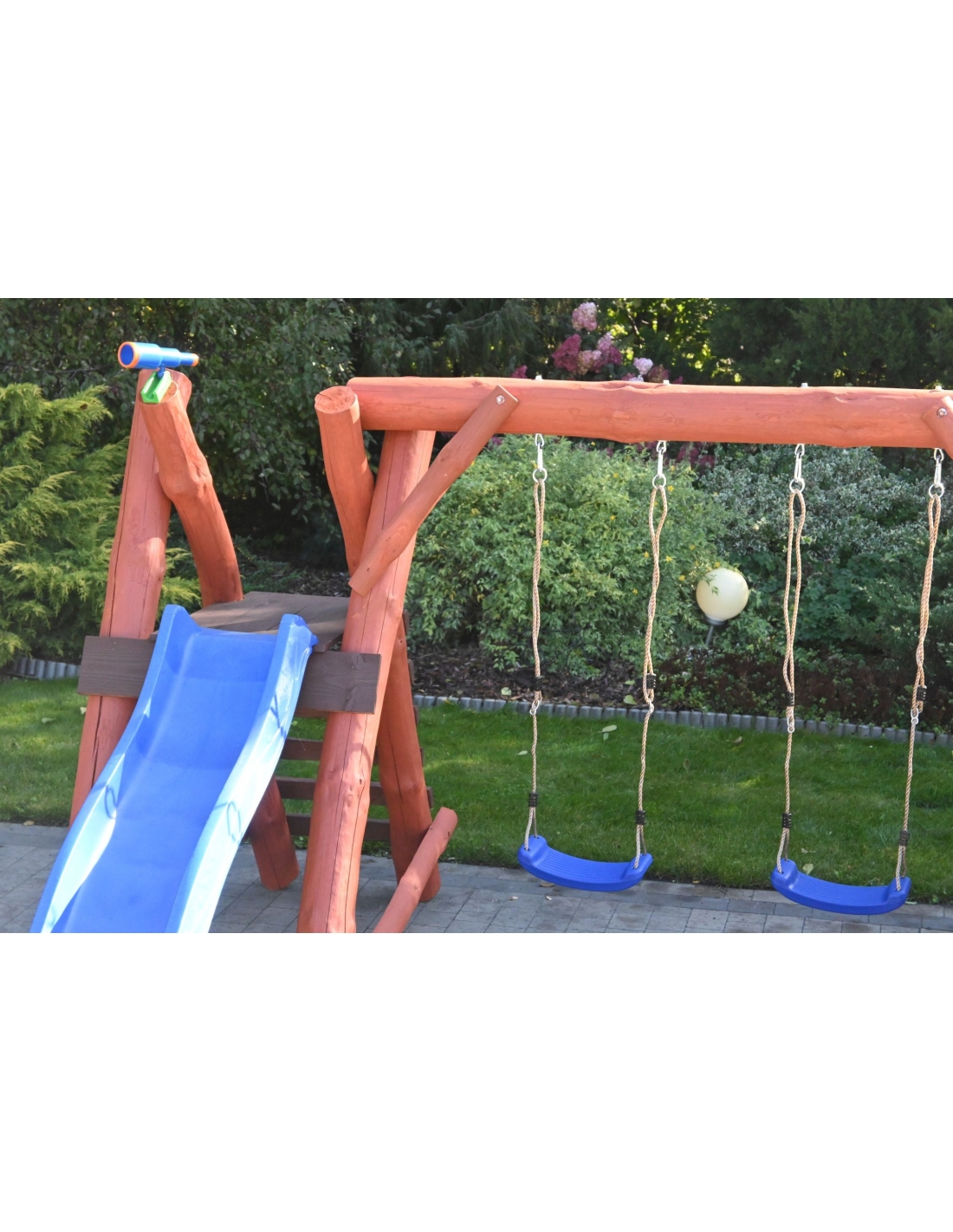 * Einige Spielturm-Sets können wir auf Wunsch anpassen. Zum Beispiel können die Position des Turms oder der Rutsche (linke oder rechte Seite) vertauscht werden, sodass der Spielturm spiegelverkehrt im Vergleich zum Angebot ausgeführt wird.