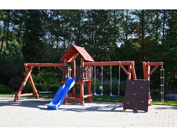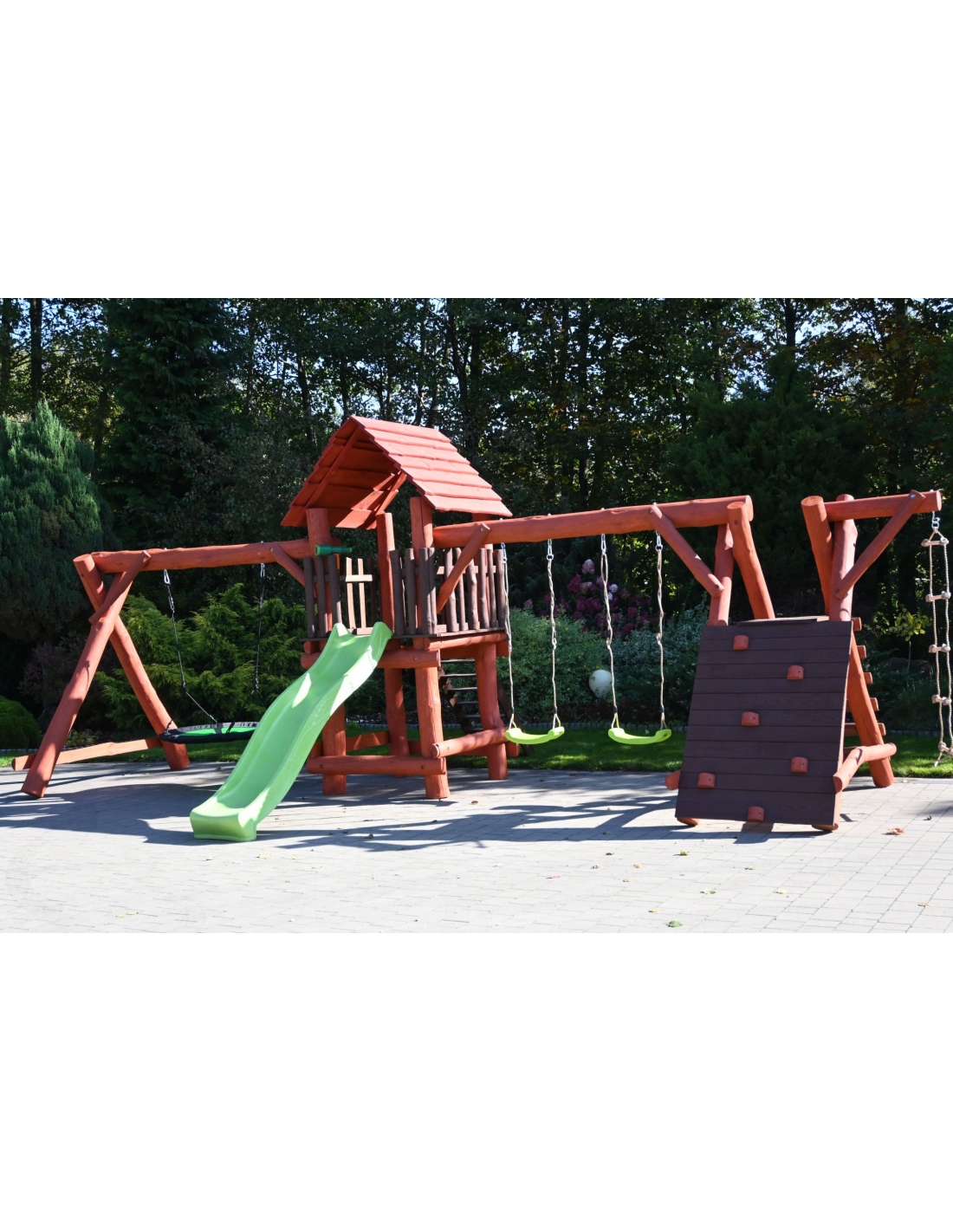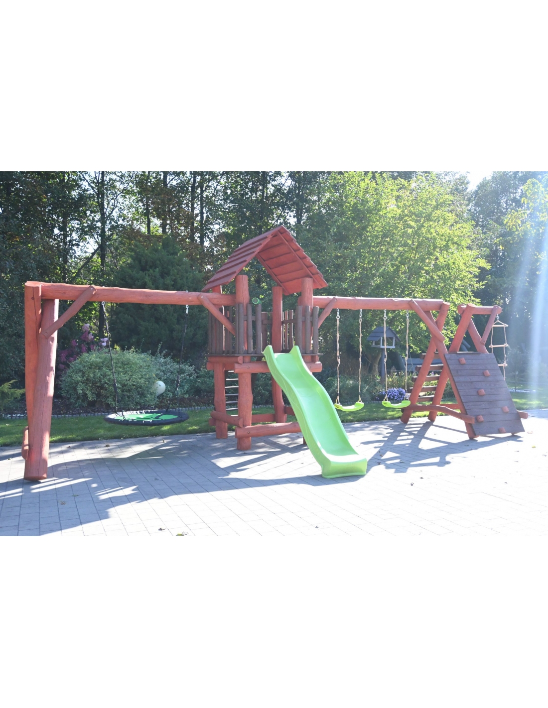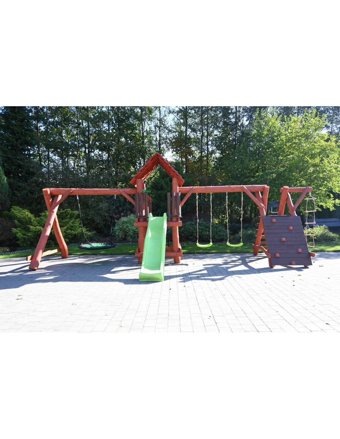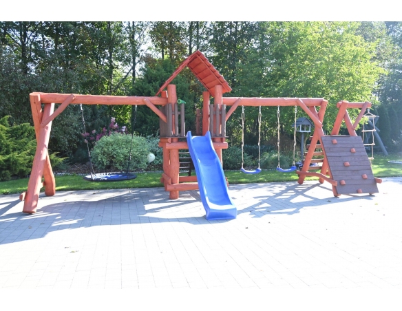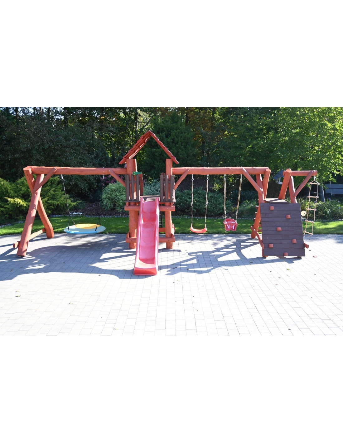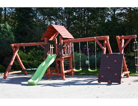 Massivholz Spielturm LEON Klettergerüst Kletterwand Rutsche Nestschaukel Babyschaukel Schaukel Kletterleiter Spielplatz