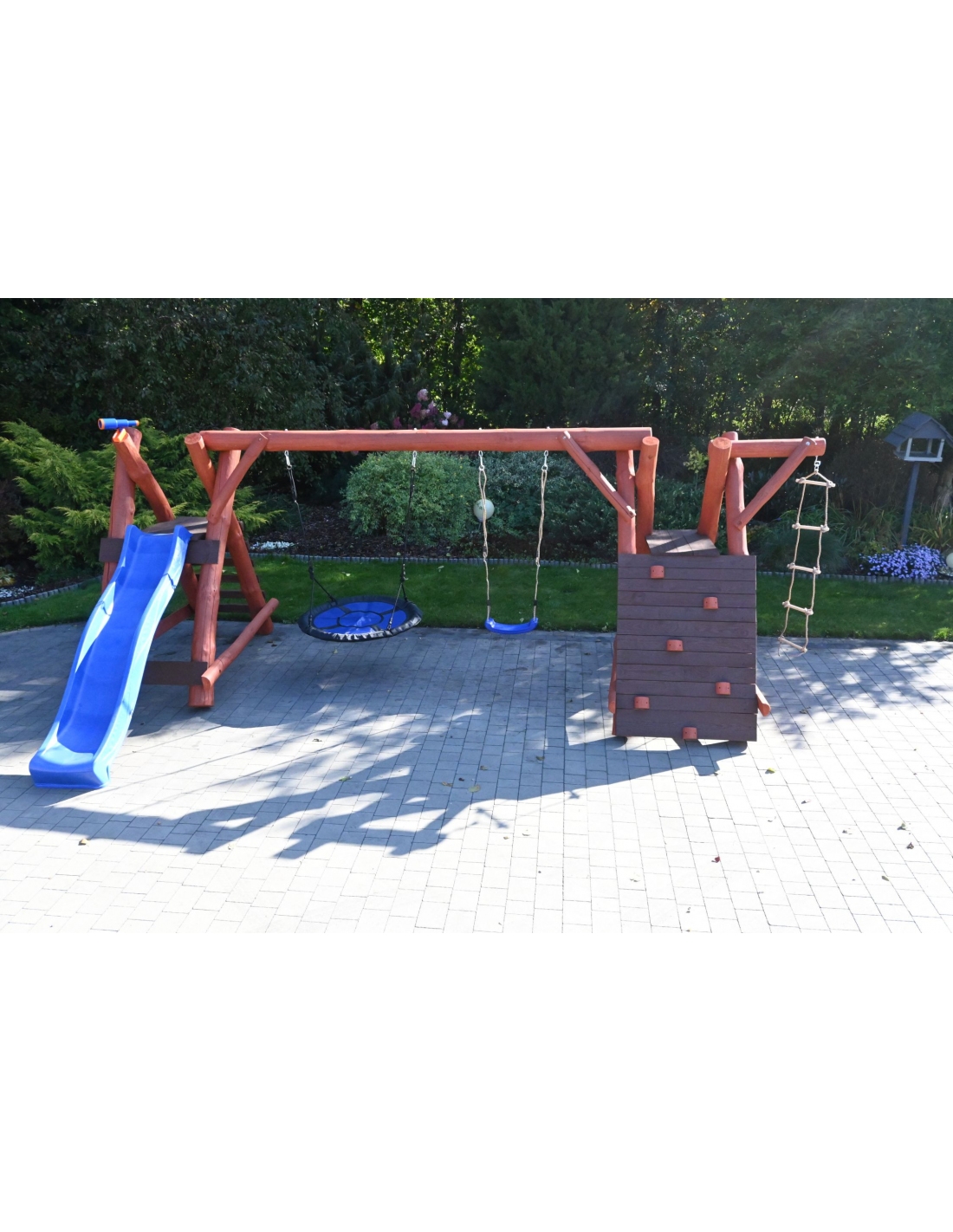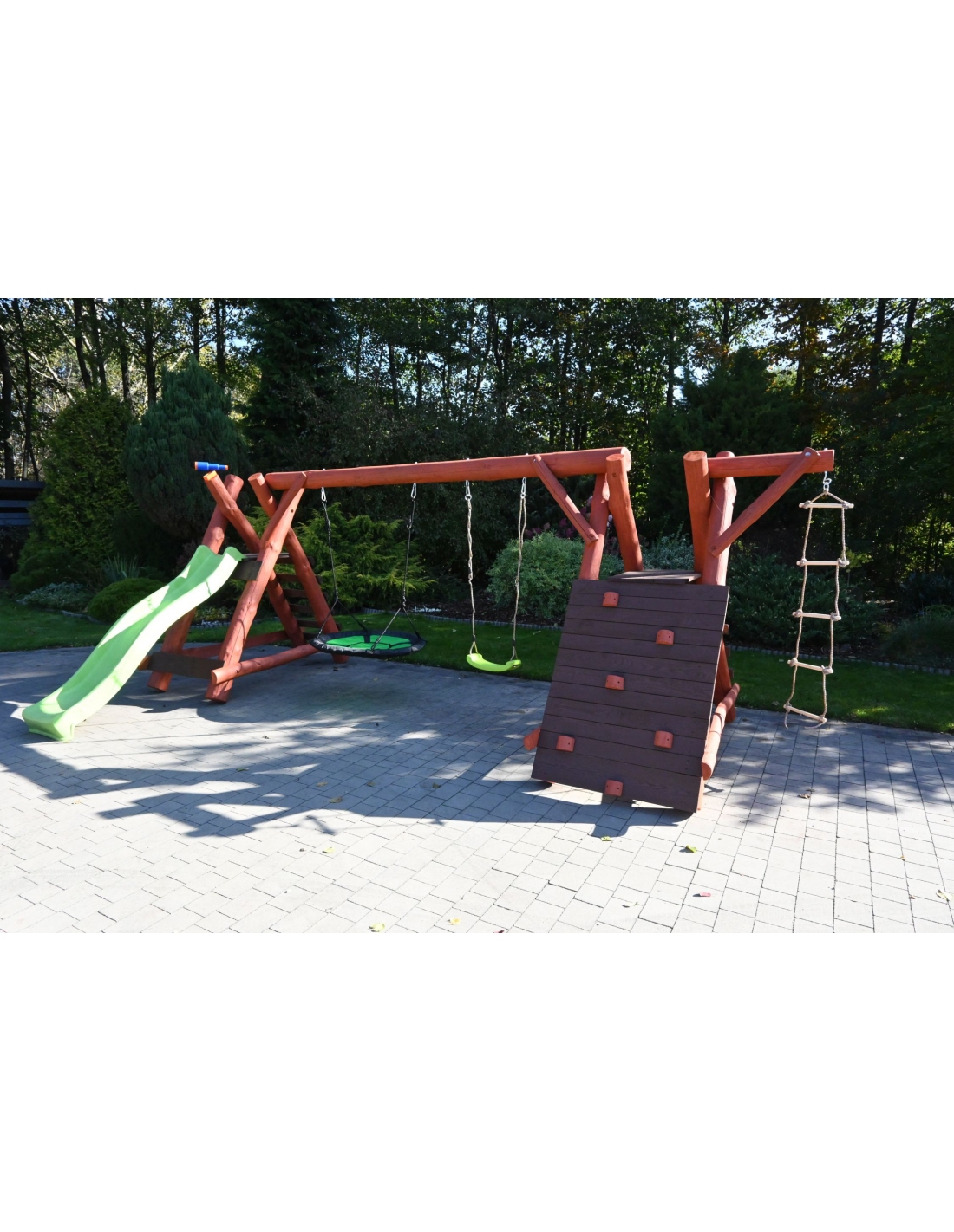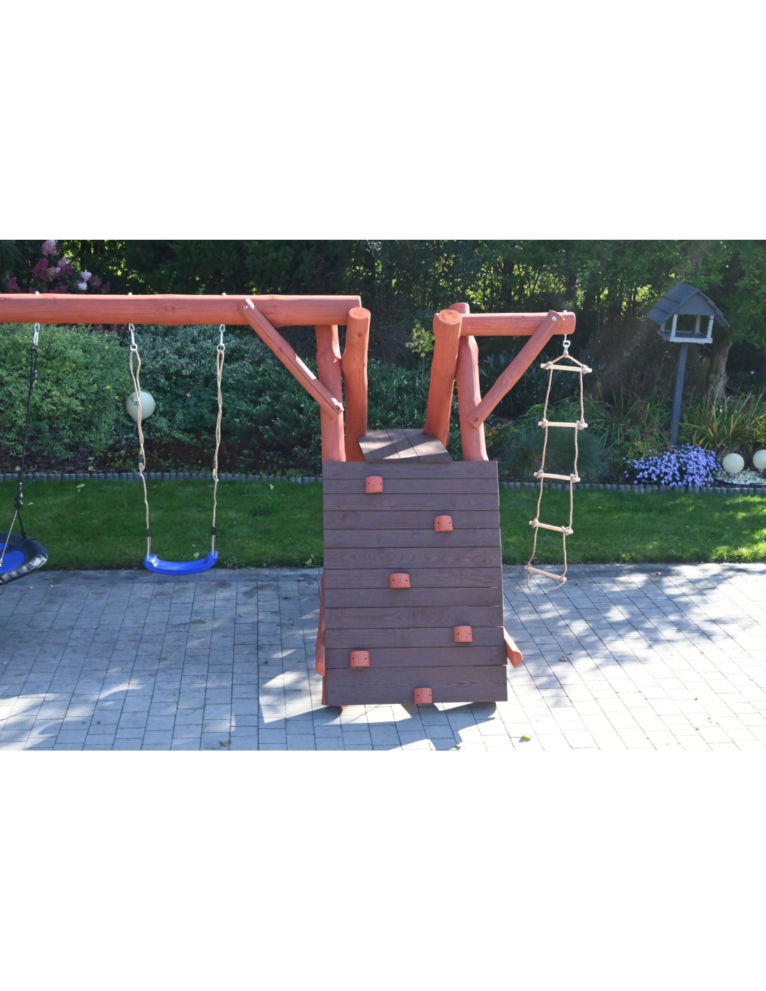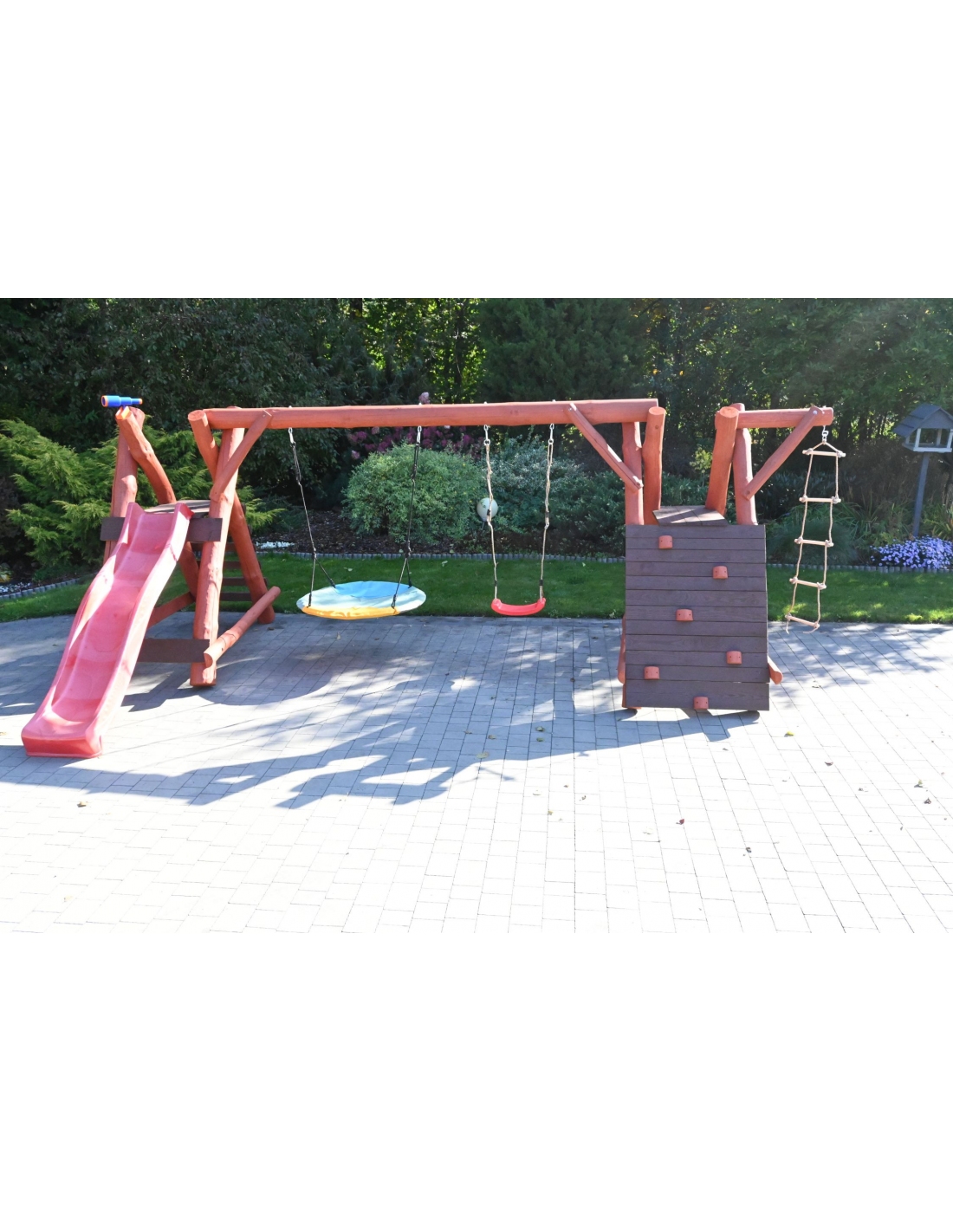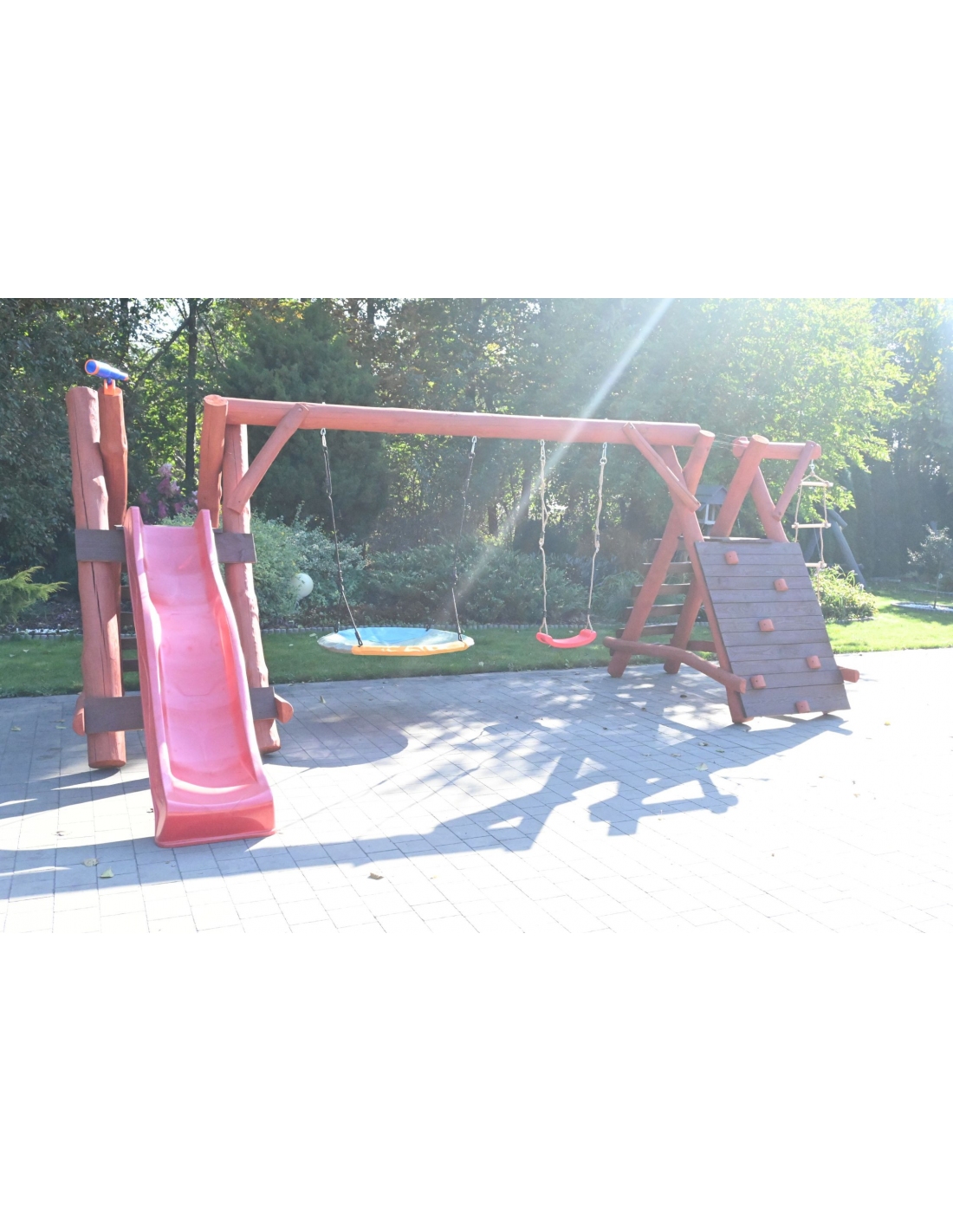 Massivholz Spielturm OSKAR Klettergerüst Kletterturm Kletterwand Rutsche Nestschaukel Schaukel Kletterleiter Spielplatz