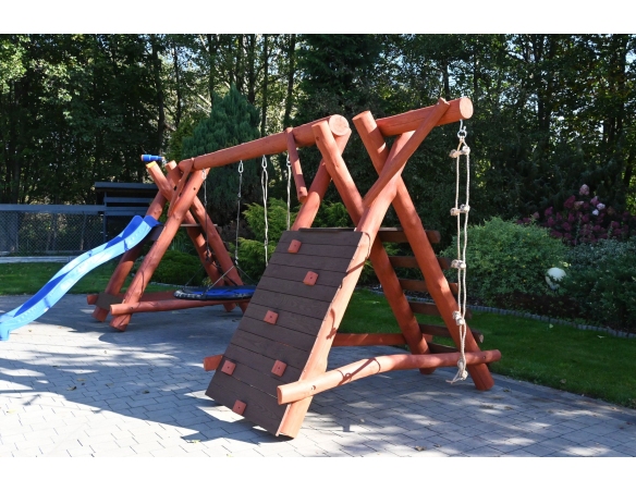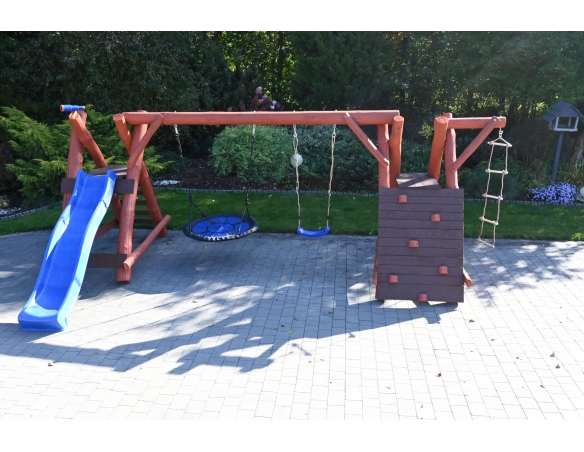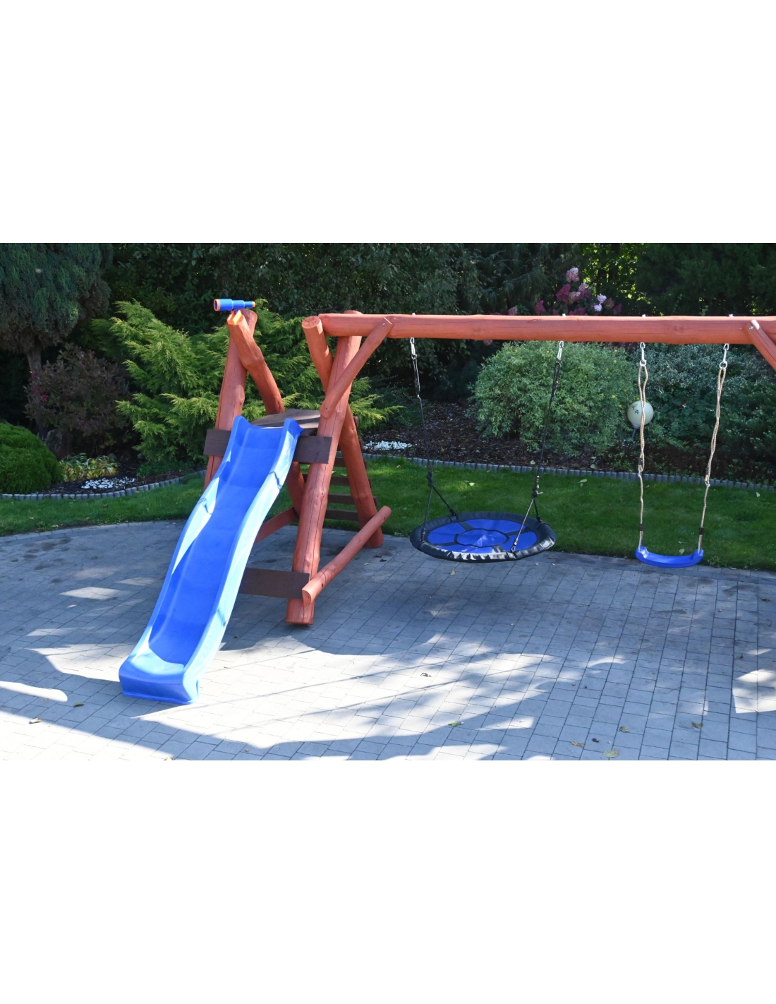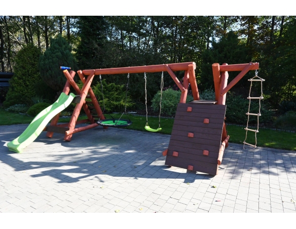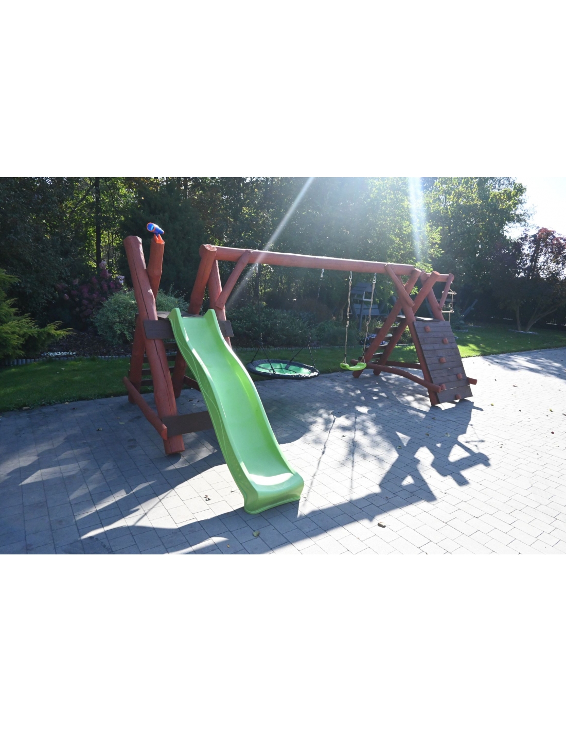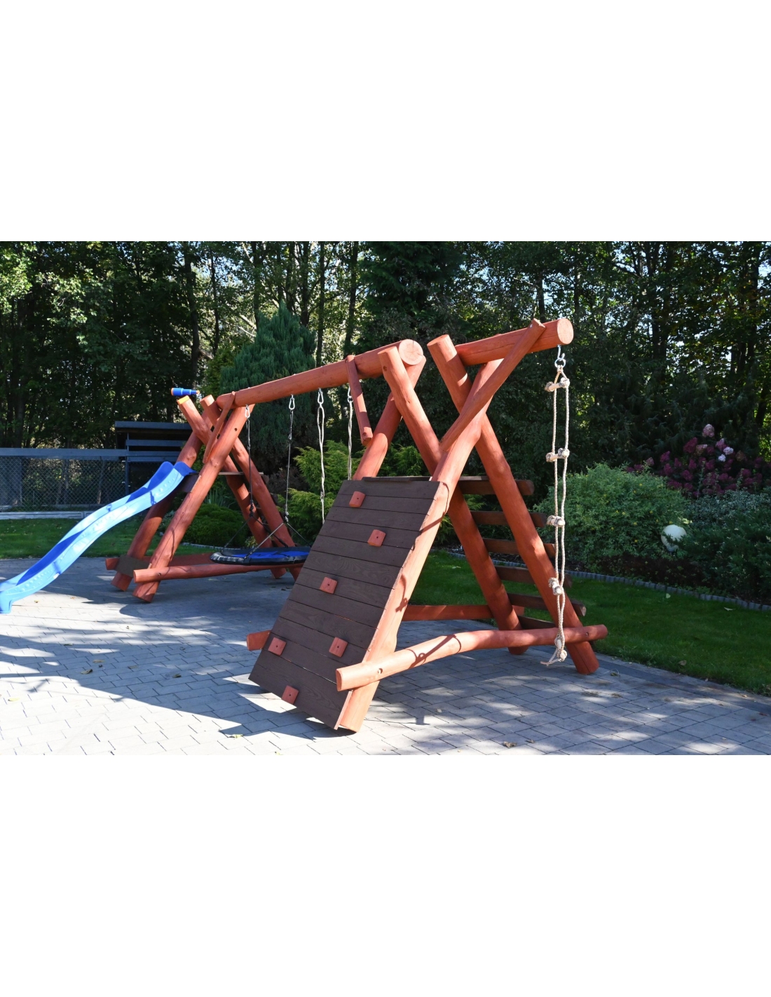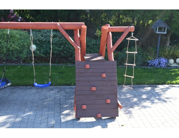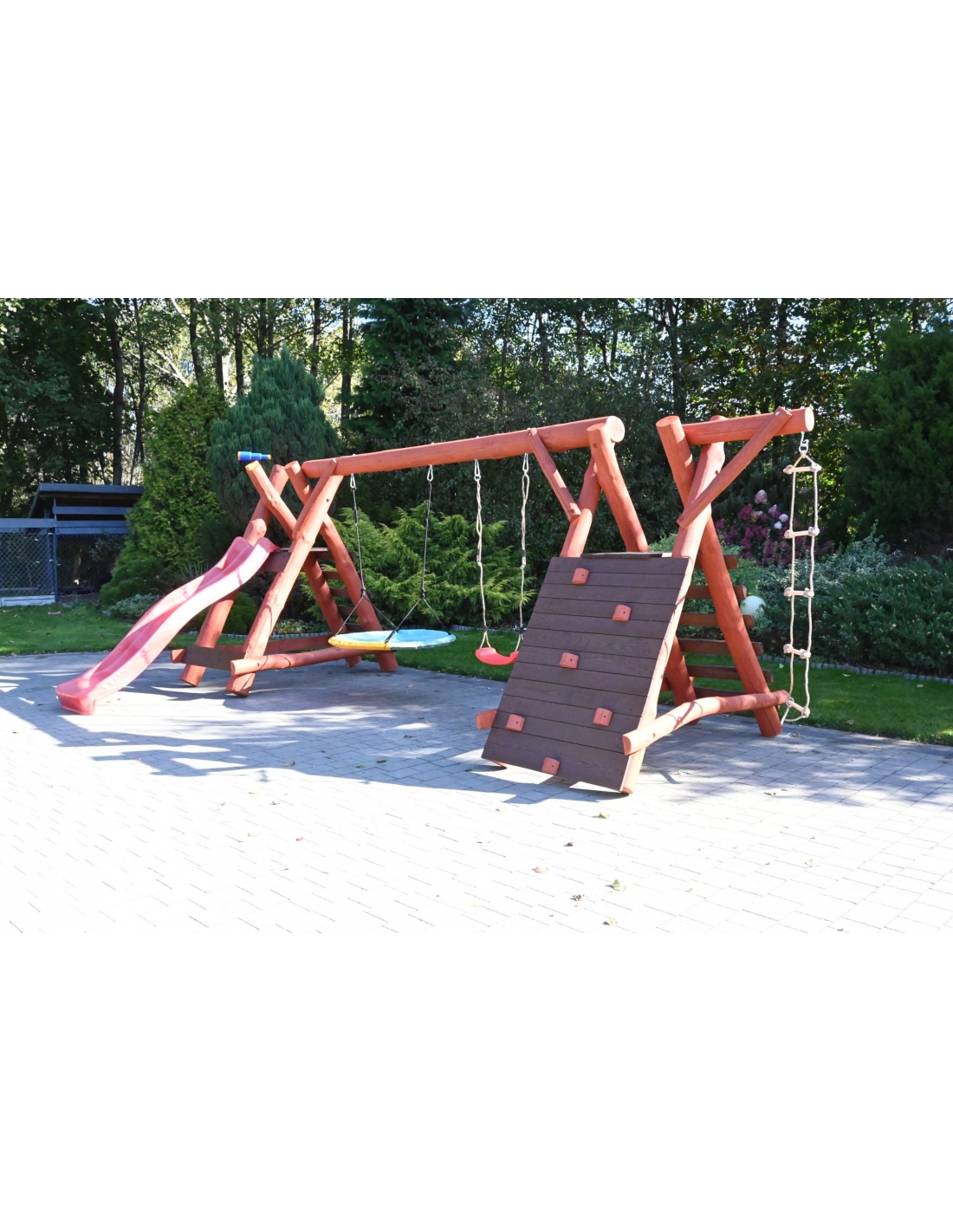 Massivholz Spielturm OSKAR Klettergerüst Kletterturm Kletterwand Rutsche Nestschaukel Schaukel Kletterleiter Spielplatz