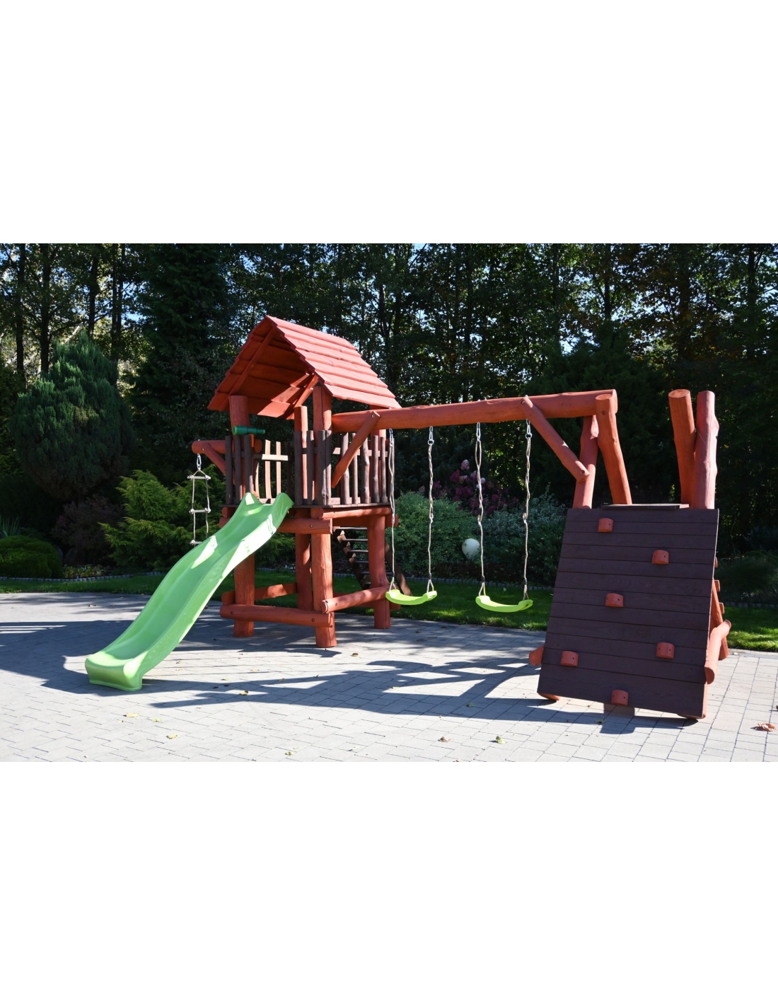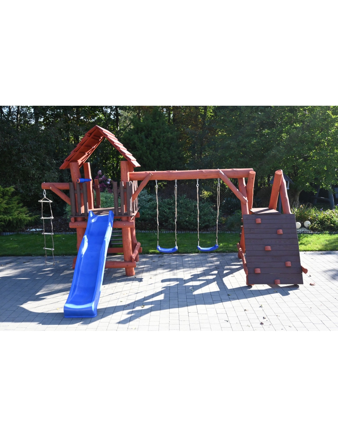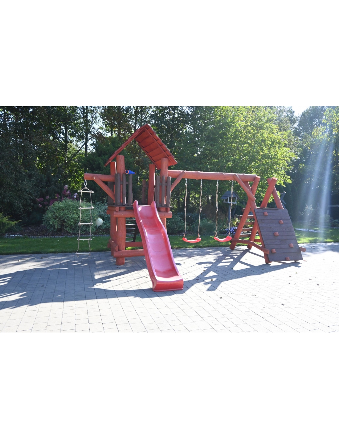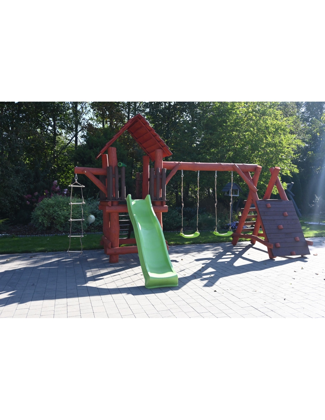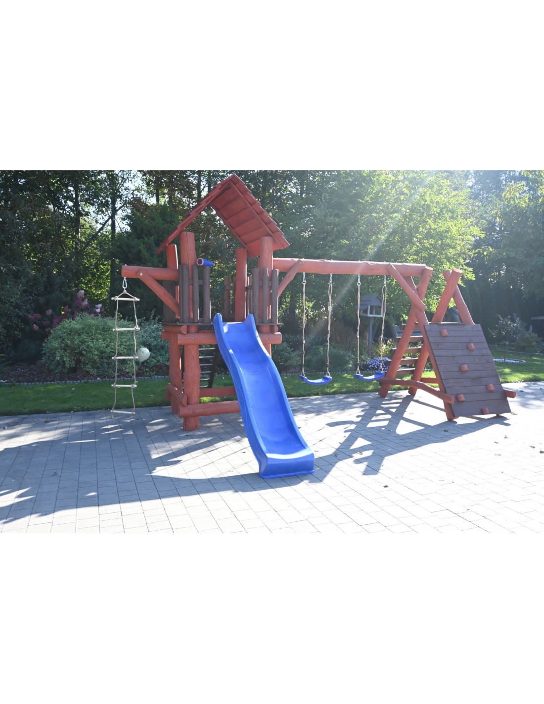 Massivholz Spielturm THEO Klettergerüst Kletterturm Kletterwand Rutsche Schaukel Kletterleiter Spielplatz im Garten