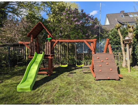 * Einige Spielturm-Sets können wir auf Wunsch anpassen. Zum Beispiel können die Position des Turms oder der Rutsche (linke oder rechte Seite) vertauscht werden, sodass der Spielturm spiegelverkehrt im Vergleich zum Angebot ausgeführt wird.