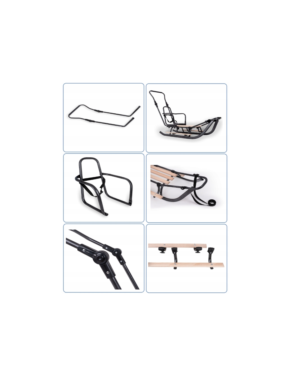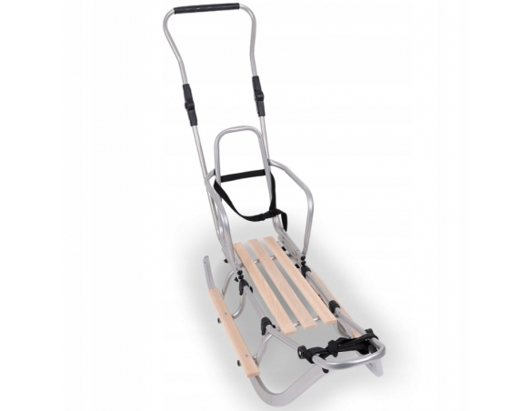 Die Schlitten sind mit einem leicht abnehmbaren Schubbügel und einer abnehmbaren Rückenlehne ausgestattet.