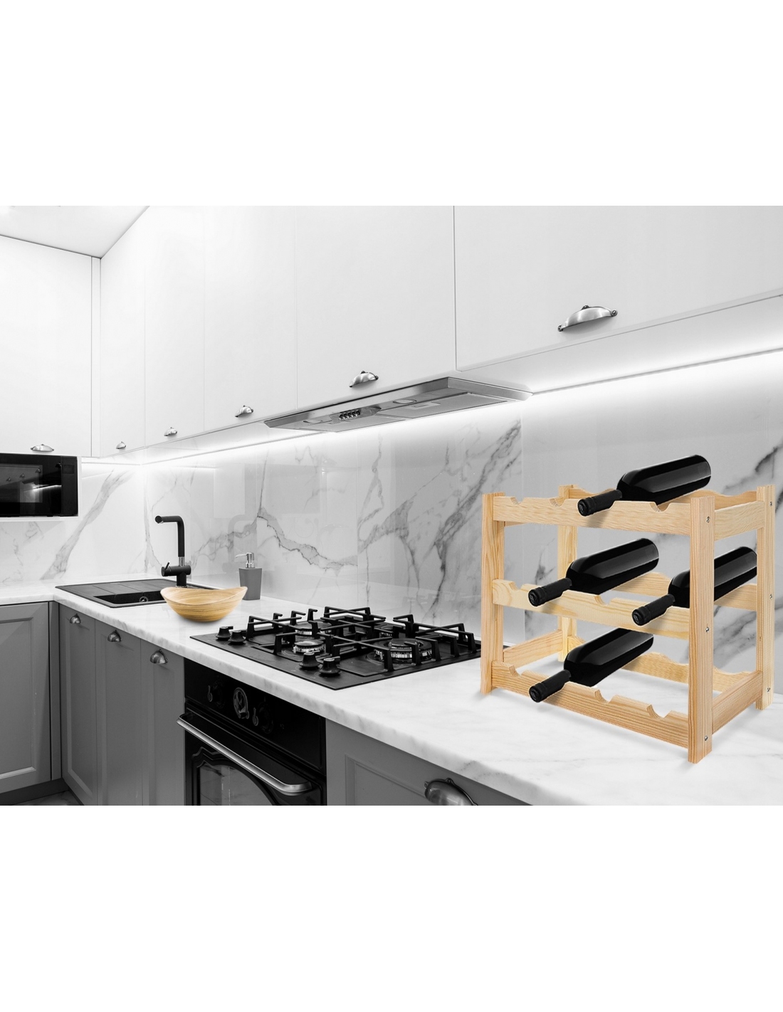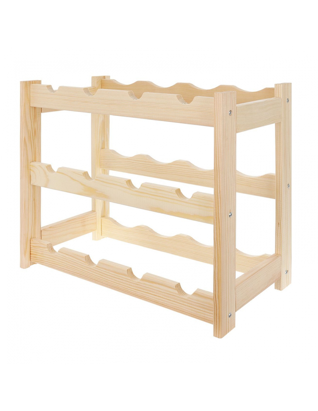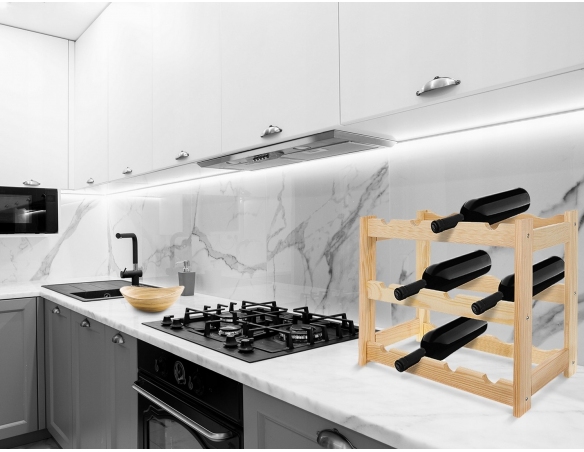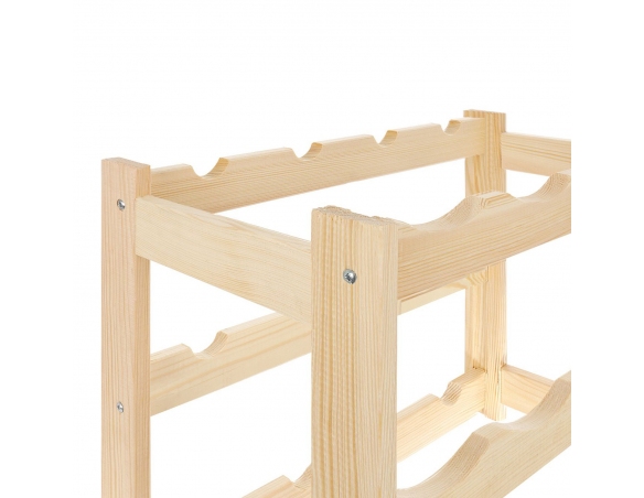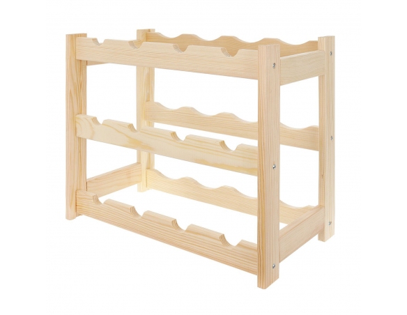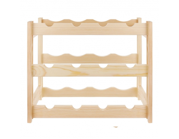 Ein Weinregal im klassischen Stil, ideal für jeden Weinliebhaber. Es präsentiert Ihre Lieblingsweinsammlung auf elegante Weise. Aufgrund seiner kompakten Größe und Funktionalität findet das Regal in jedem Zuhause, Keller, in der Garage, im Weinladen oder Restaurant seinen Platz. Die natürliche Holzkonstruktion passt zu jeder Einrichtung. Eine perfekte Geschenkidee für Weinliebhaber. Es verfügt über 3 Ebenen und bietet Platz für jeweils 4 Flaschen pro Ebene. Geeignet zur Aufbewahrung von Standard-Weinflaschen mit einem Fassungsvermögen von 750 ml.